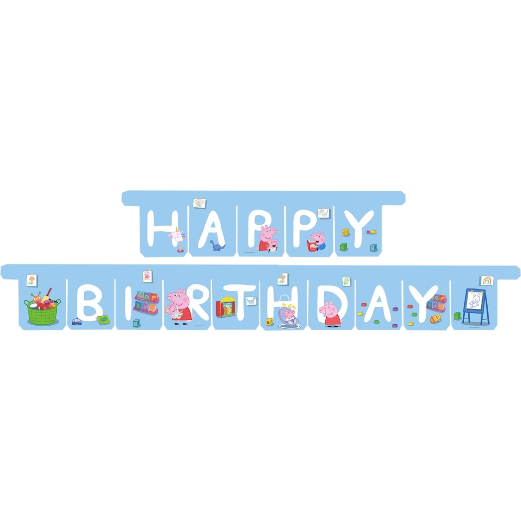 Versier de verjaardag met de Peppa Pig Happy Birthday-slinger, speciaal ontworpen om een feestelijke en vrolijke sfeer te creëren. De slinger heeft kleurrijke illustraties van Peppa en haar vriendjes die jonge kinderen aantrekken. De vlaggetjes tonen duidelijke letters die samen het bericht "HAPPY BIRTHDAY" vormen en zijn eenvoudig in elkaar te zetten. Licht en opvallend, perfect voor kinderdecoraties en feestelijke fotosessies.