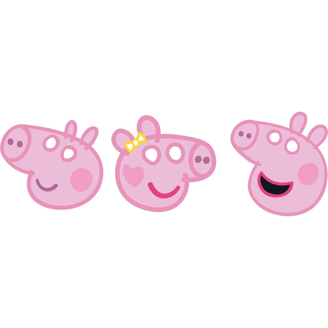 Set van 6 officiële Peppa Pig-maskers met kleurrijke, herkenbare ontwerpen, bedoeld om de kleintjes te laten glimlachen.