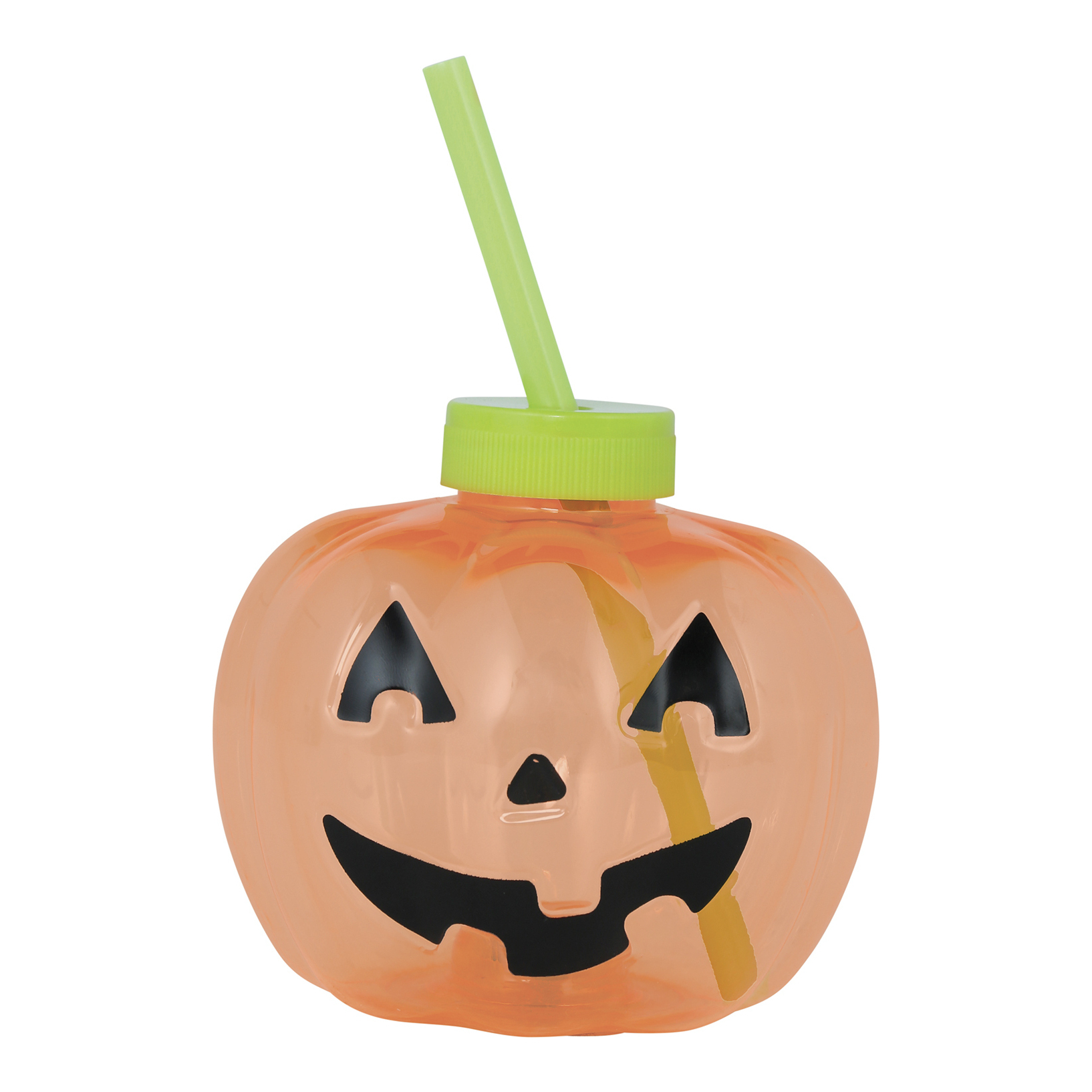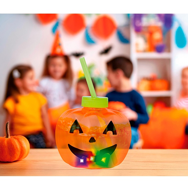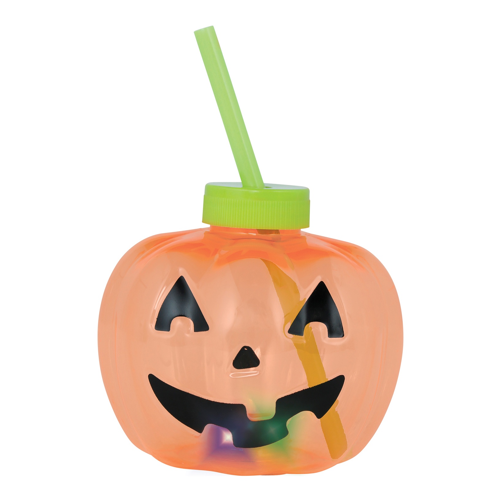Pompoenbeker met rietje en led van 17 cm - 1 stuk