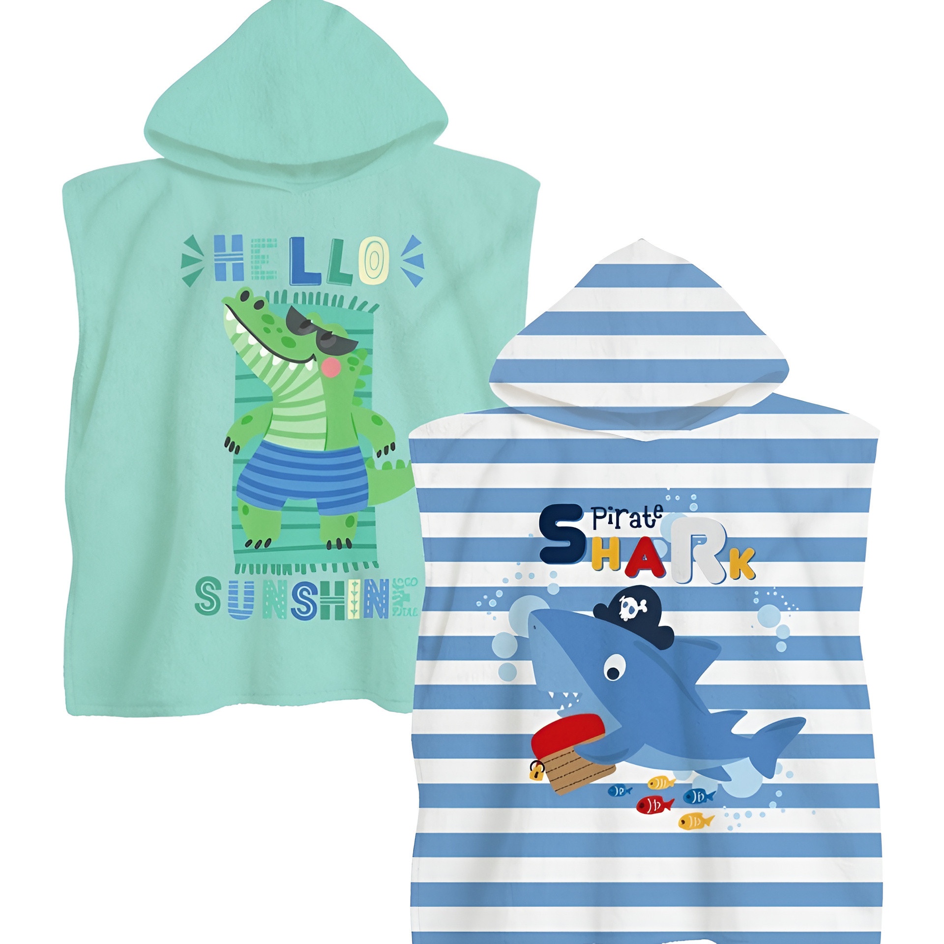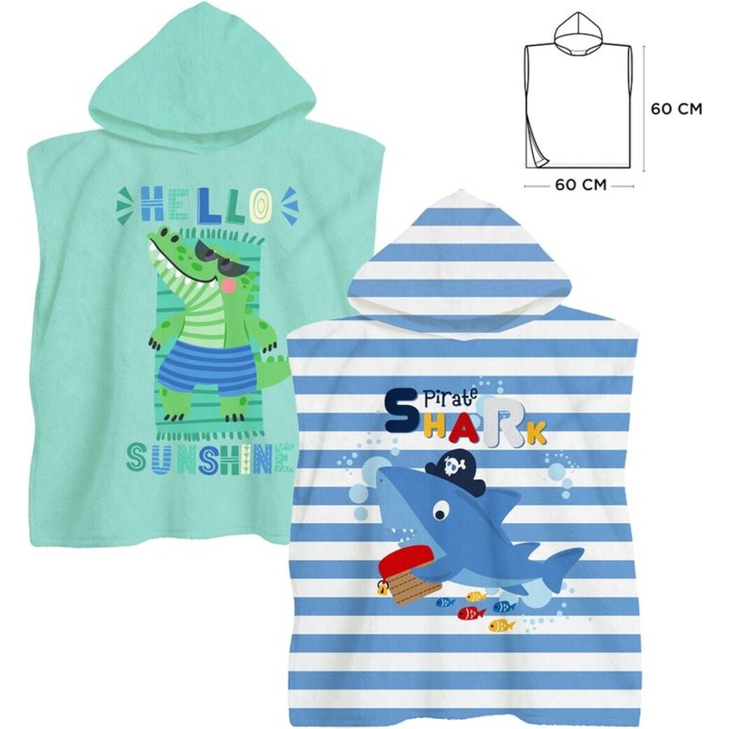 Poncho-handdoek dino of haai met capuchon - 1 stuk