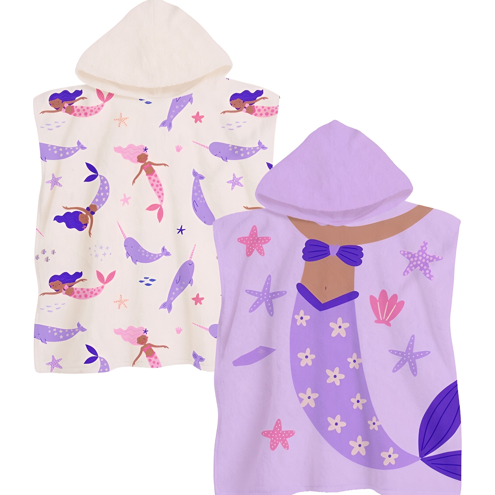 Poncho-handdoek met zeemeerminprint en capuchon - 1 stuk