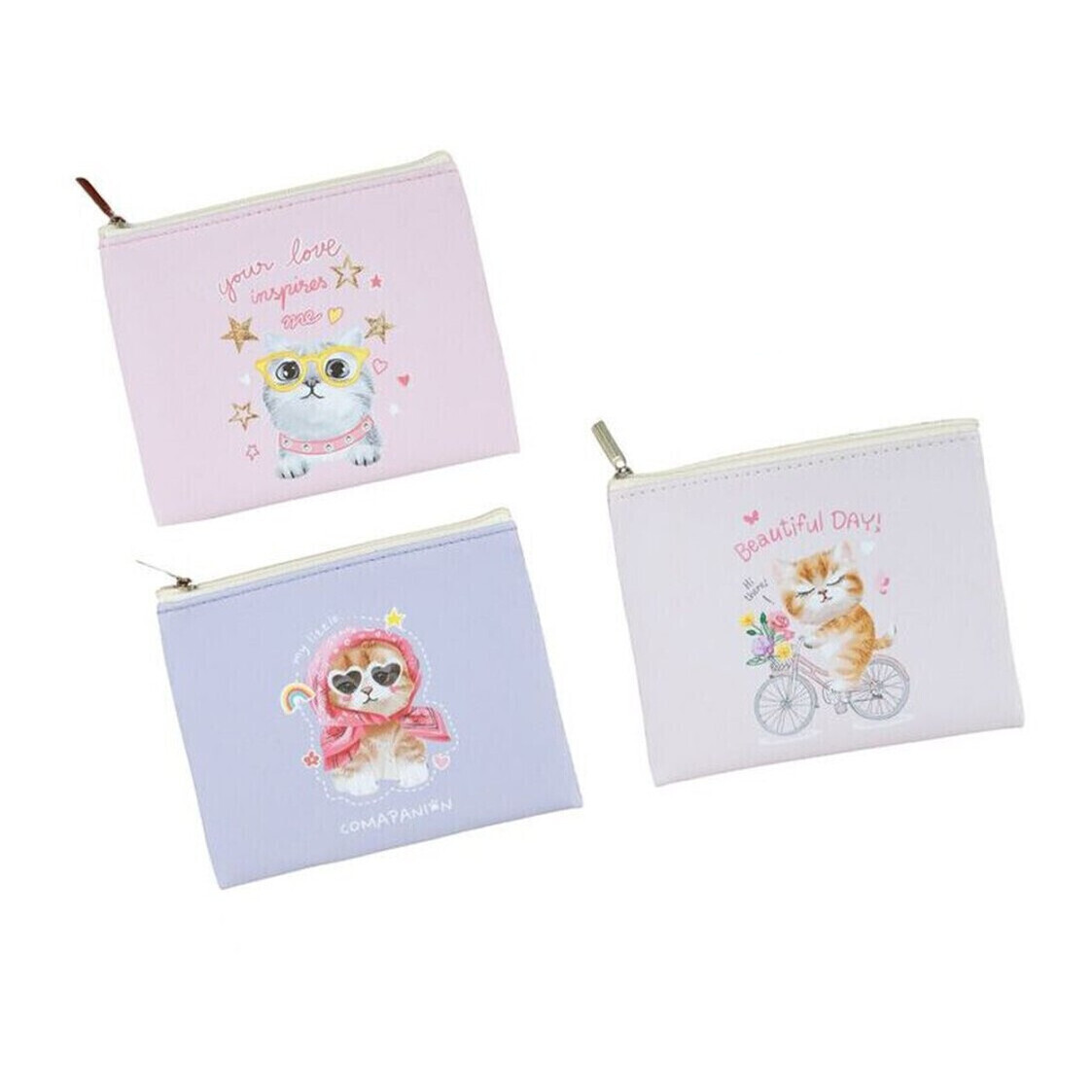 Portemonnee met fantasie kattendesign 12,5 x 10,5 cm - 1 stuk