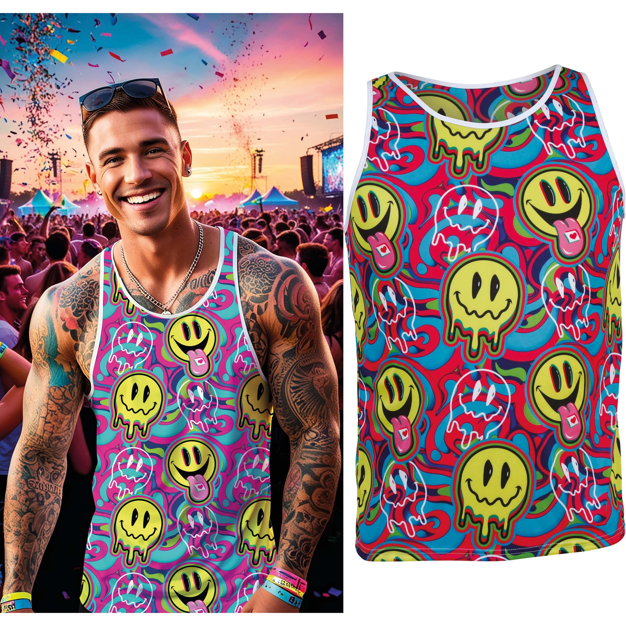 Psychedelische Acid Smile tanktop voor heren