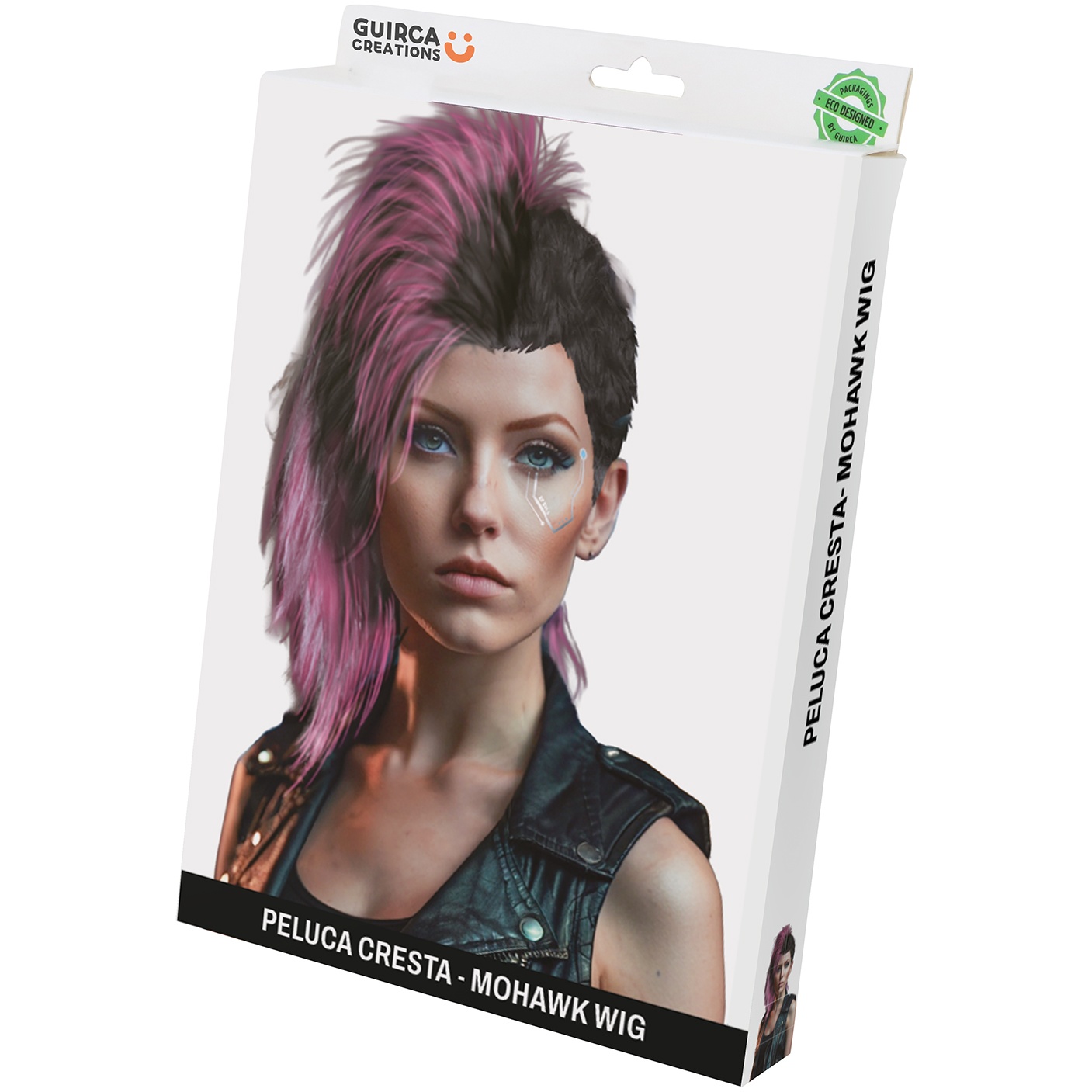 Punkpruik met een opvallend roze-zwart contrast, ontworpen voor een gedurfde en moderne stijl.