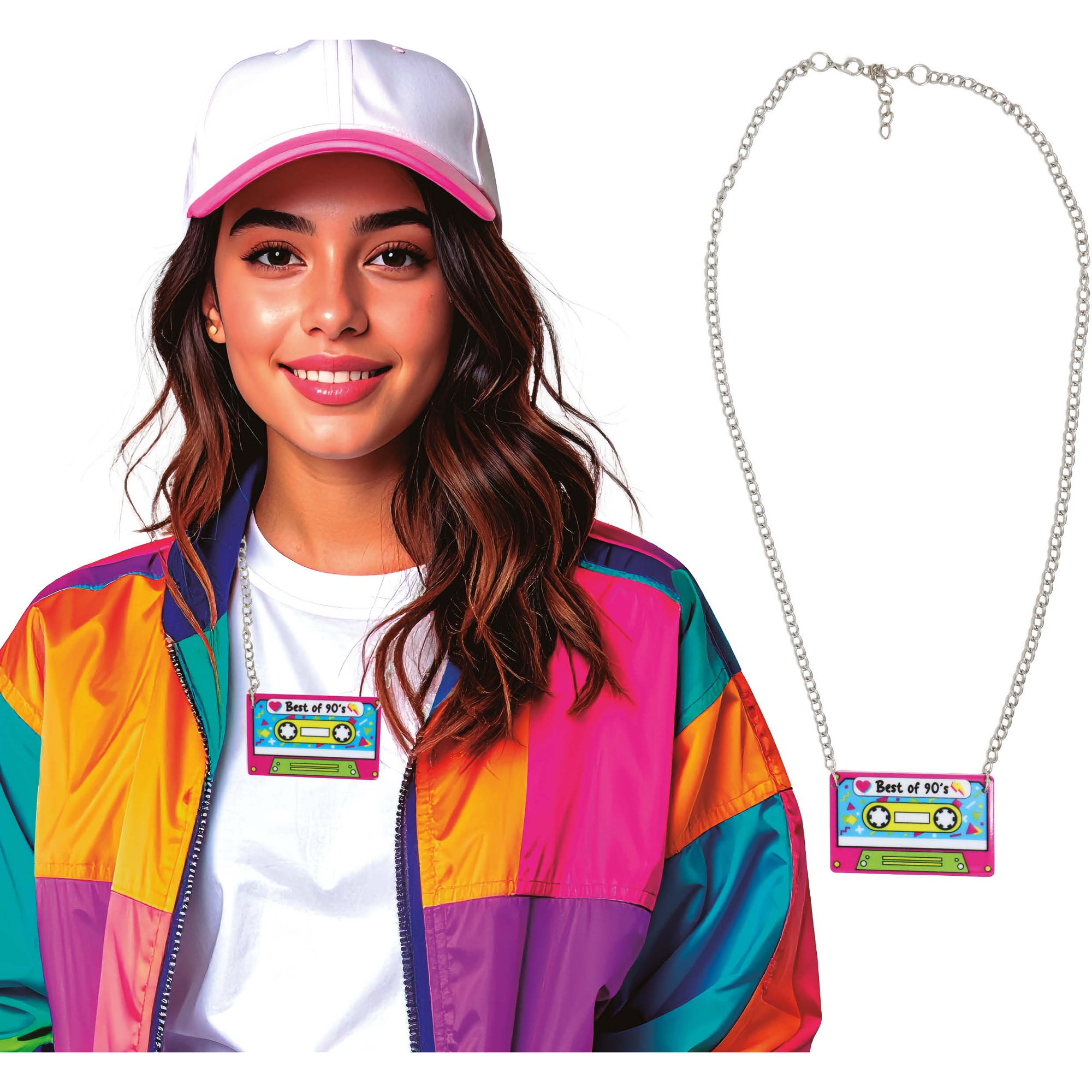 Een cassetteketting met een retrojaren '90?look die elke outfit een speelse en nostalgische twist geeft. De kleurrijke hanger weerspiegelt het klassieke cassettebandje in felle tinten en is perfect voor wie een accessoire met karakter zoekt.