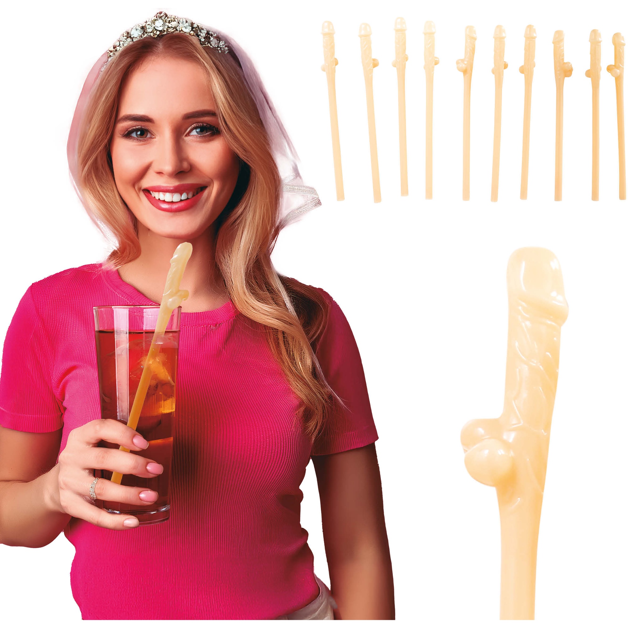 - Set van 10 rietjes met gedurfd ontwerp, ideaal voor vrijgezellenfeesten.