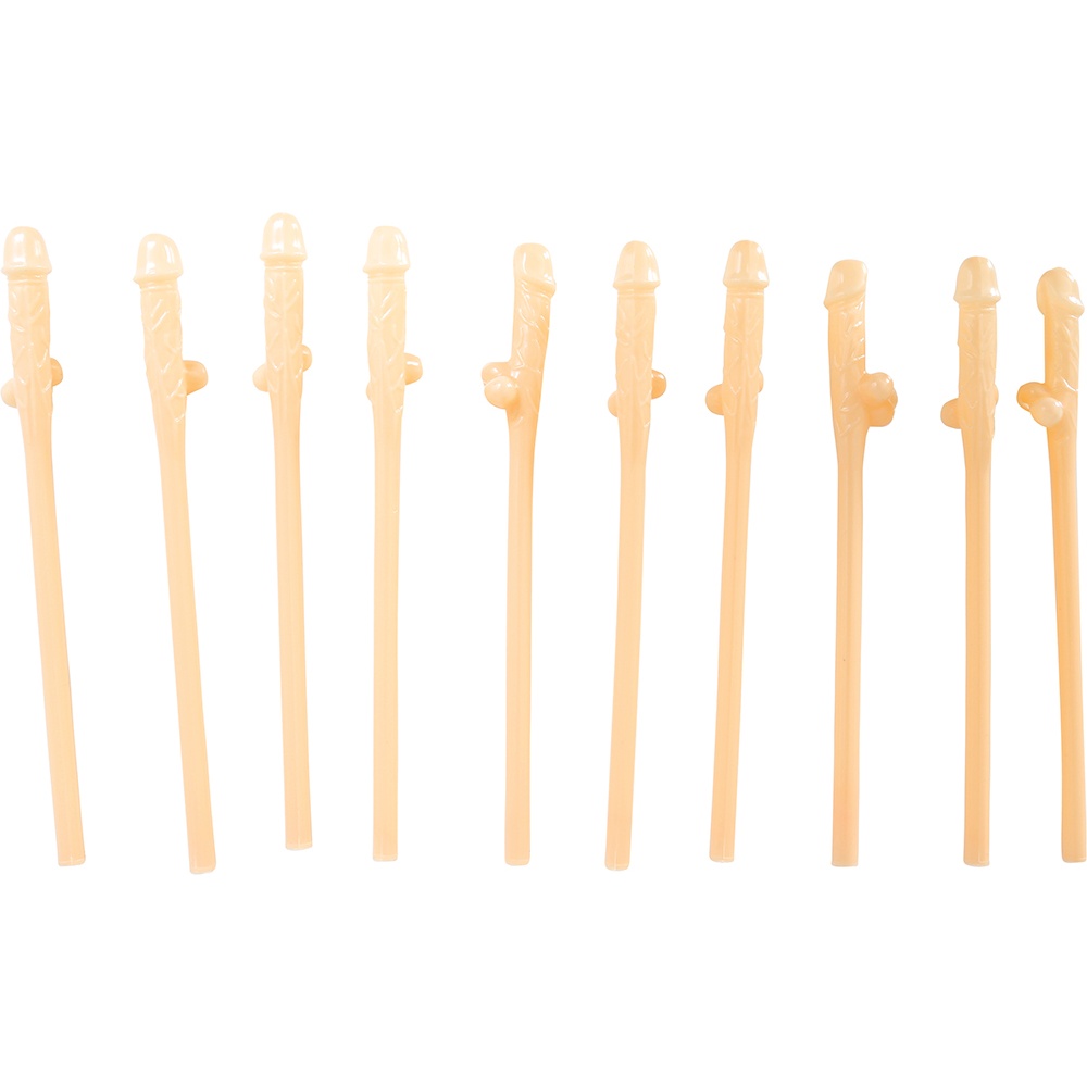 Set van 10 grappige rietjes in penisvorm, ontworpen om vrijgezellenfeesten op te vrolijken.