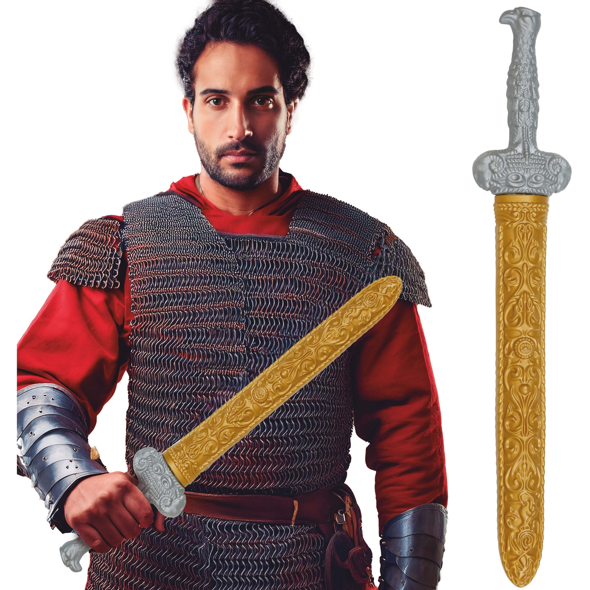 Ideale aanvulling op je soldaten- of gladiatorenpak met een klassieke en opvallende afwerking. Gemaakt van licht en stevig PVC, met ornamentale details geïnspireerd op de Romeinse periode. De decoratieve schede maakt vervoer eenvoudig en beschermt het stuk - perfect voor carnaval, themafeesten en historisch nagebootste evenementen. Veilig en flexibel ontwerp, bedoeld voor gebruik bij evenementen en rollenspellen.