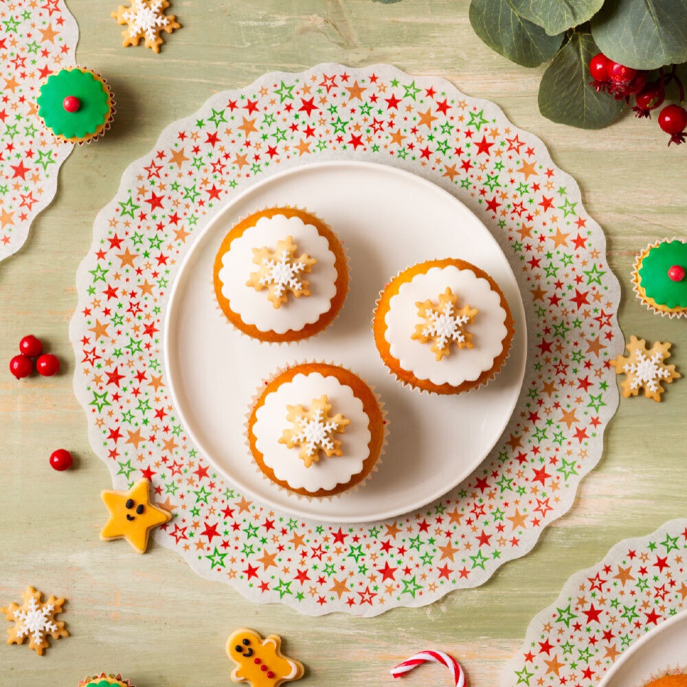 - Decoratieve papieren bakmatjes met thematische ontwerpen, ideaal voor het serveren en presenteren van zoete desserts of hartige bereidingen met een elegante en verfijnde touch.