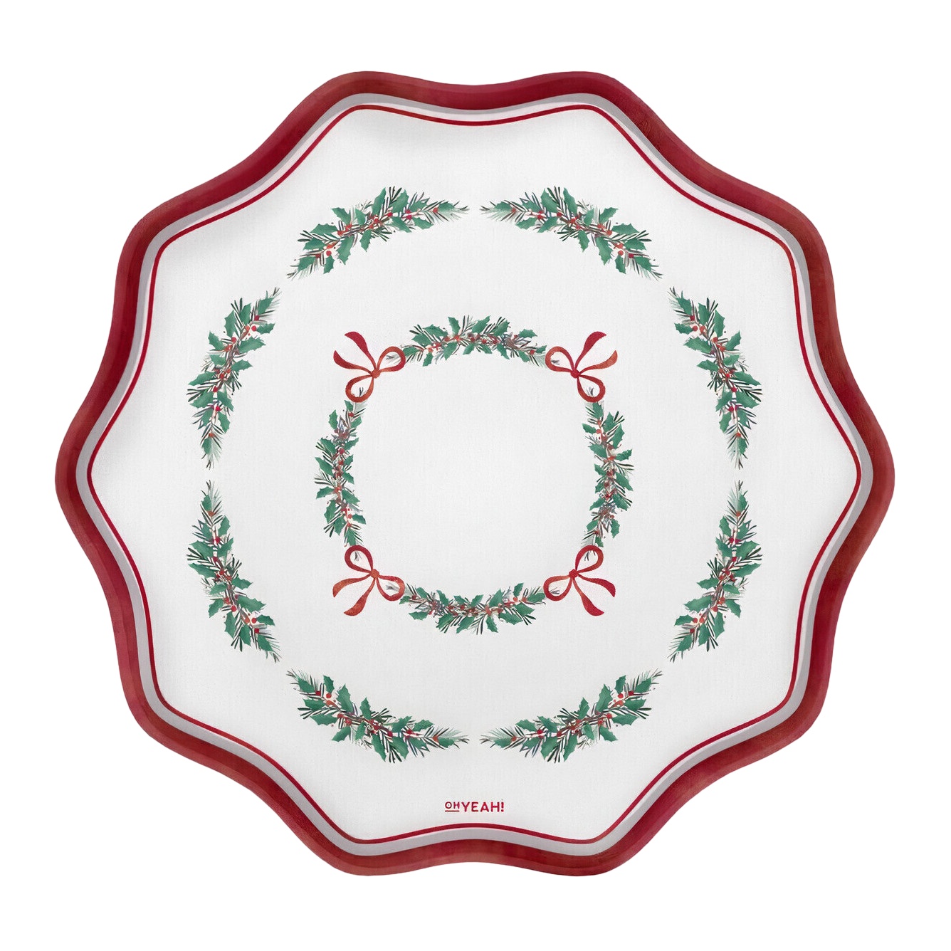 Schaal van 33 cm met maretak en rood lint - 2 stuks