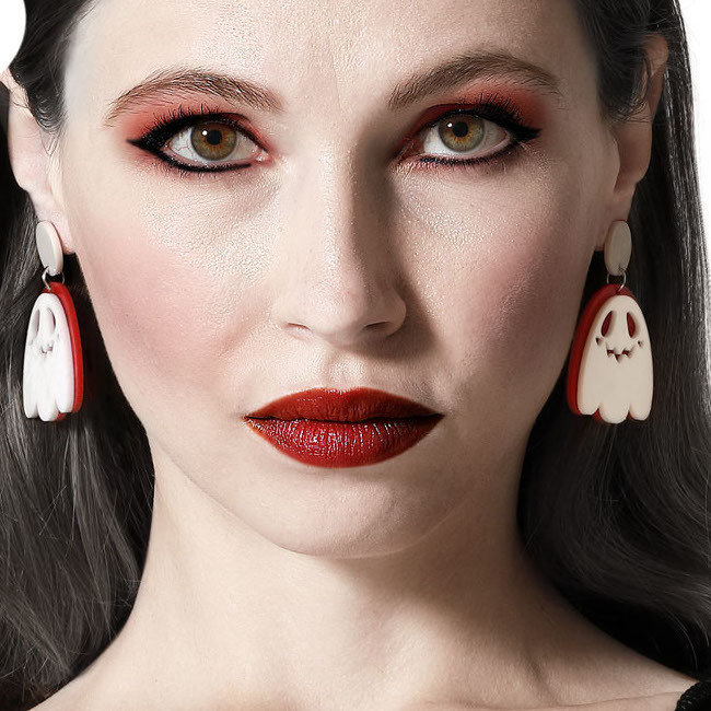 • Een paar oorbellen in de vorm van een geest, in rood en wit. Leuk en thematisch.