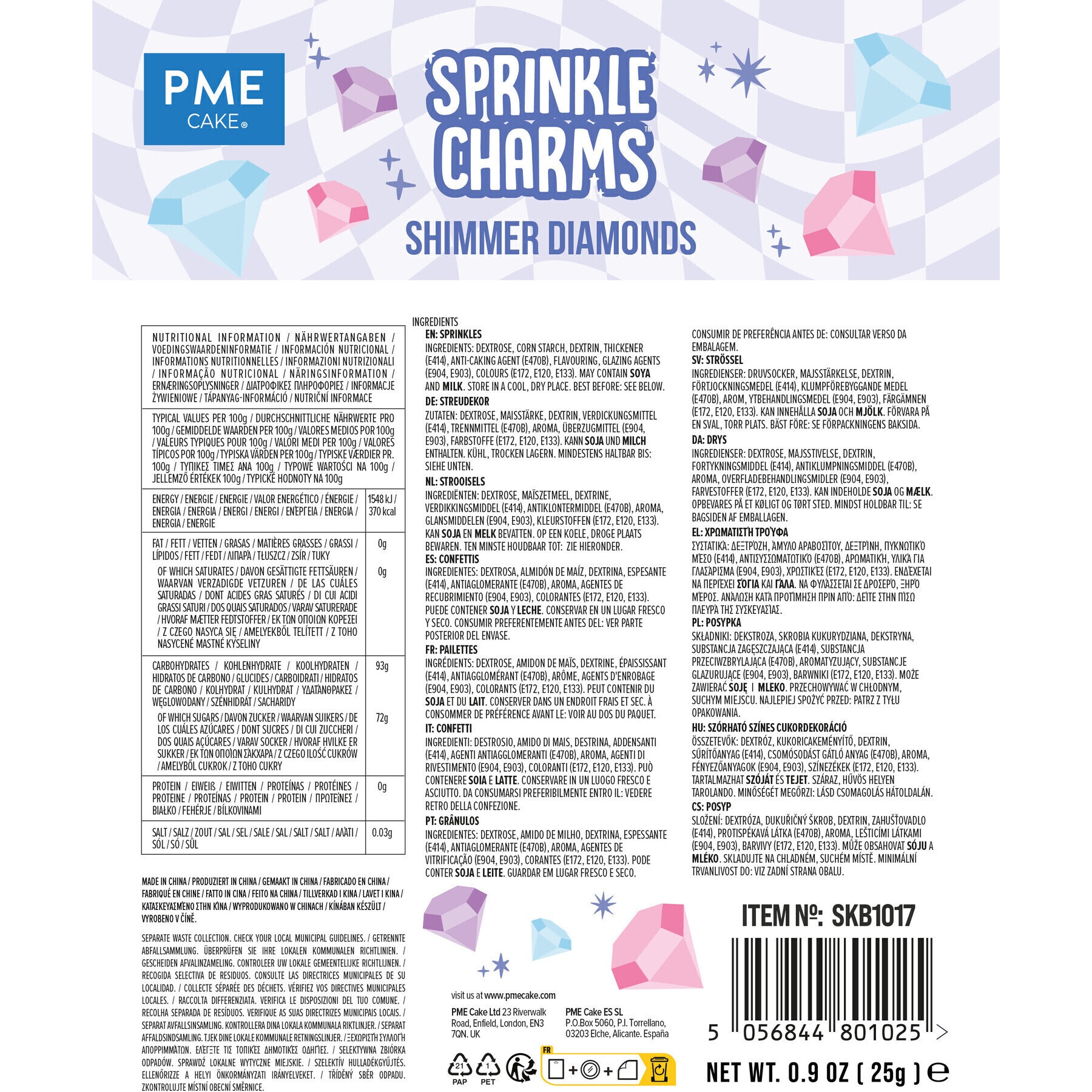 Ingrediënten: dextrose, maïszetmeel, dextrine, verdikkingsmiddel (E414), antiklontermiddel (E470B), aroma, glansmiddelen (E904, E903), kleurstoffen (E172, E120, E133).