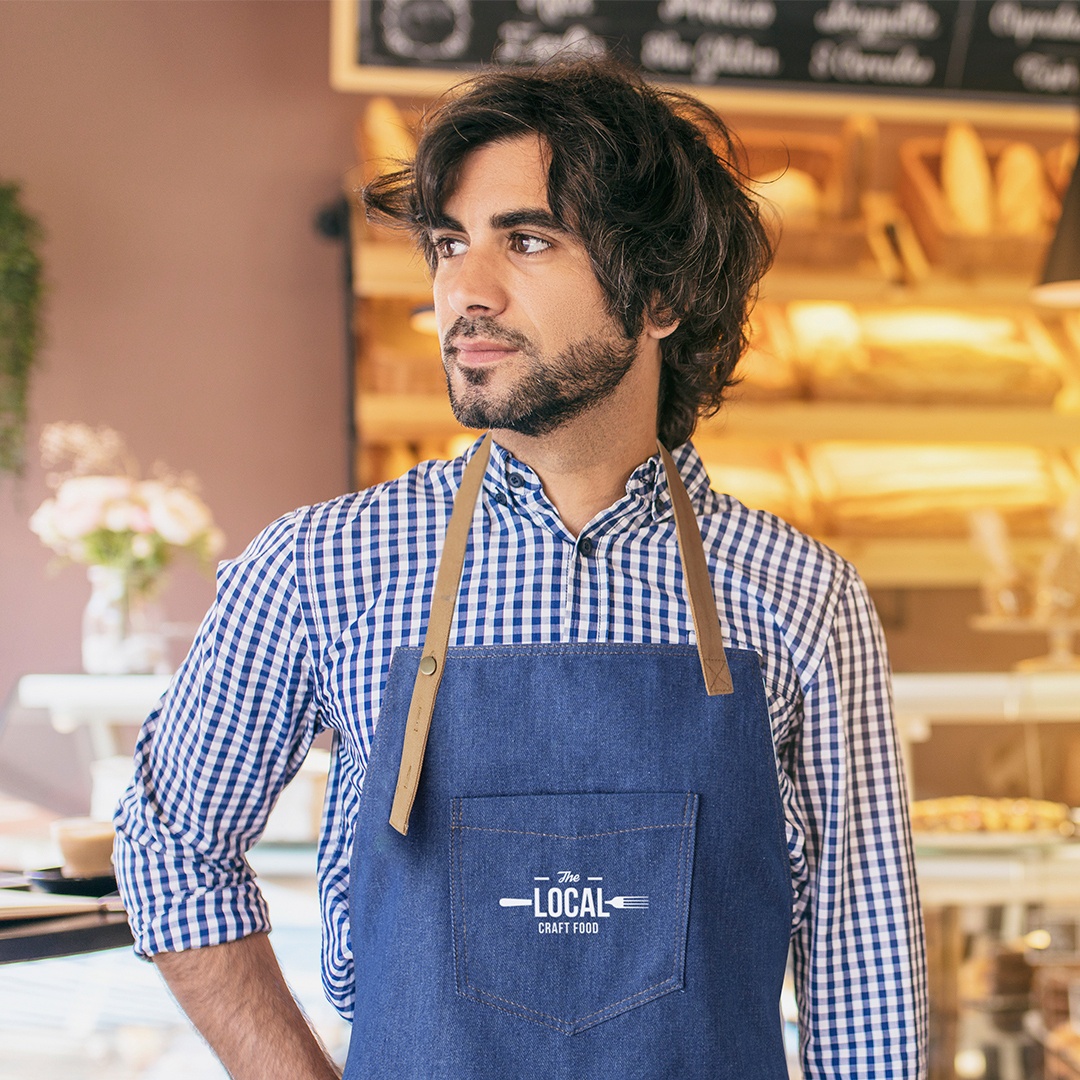 - Ontworpen tot onder de knie, met verstelbare halsband met knoop en versterkte bruine taillebanden.