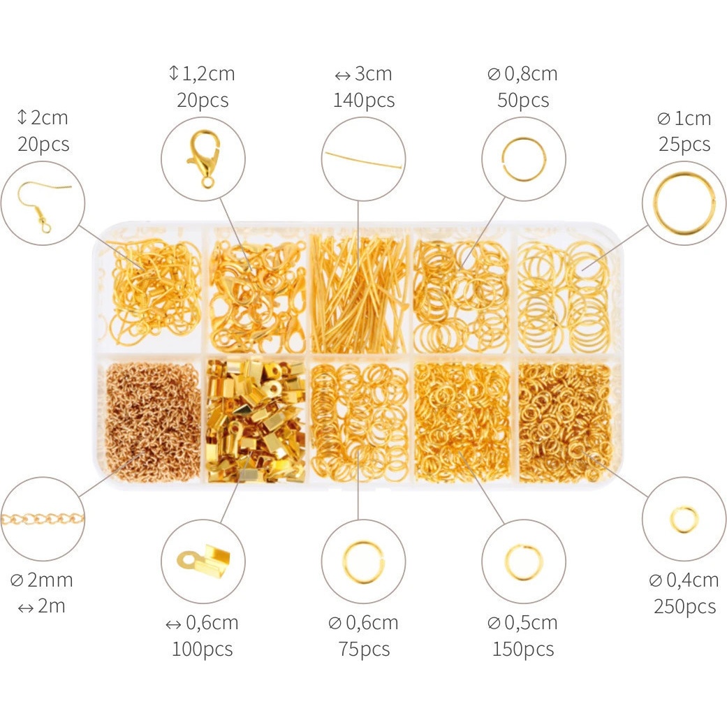 Set gouden sieradenonderdelen - 831 stuks