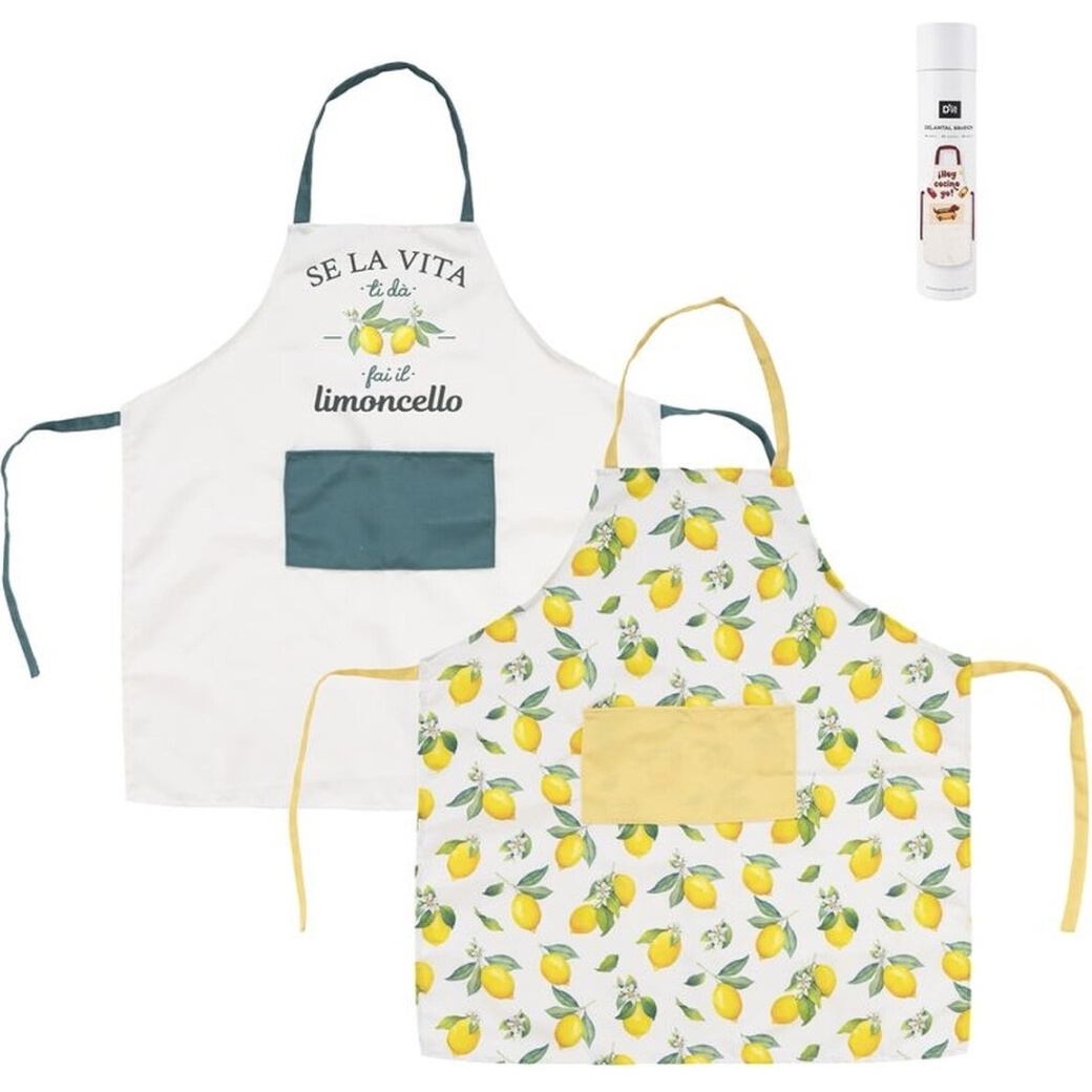 Set voor moeder en dochter met twee bijpassende schorten die een vrolijke, zomerse touch aan de keuken geven. De citroenprint en contrasterende details combineren stijl met speelsheid.