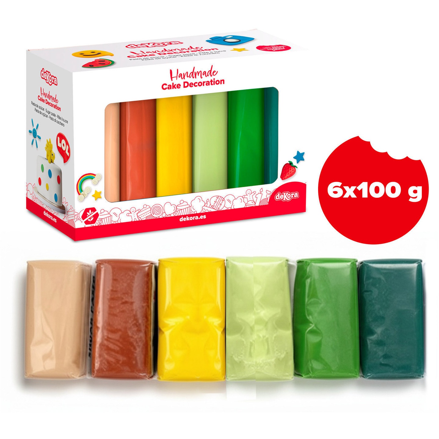 Set van 6 junglekleuren fondant van 600 gr - Dekora