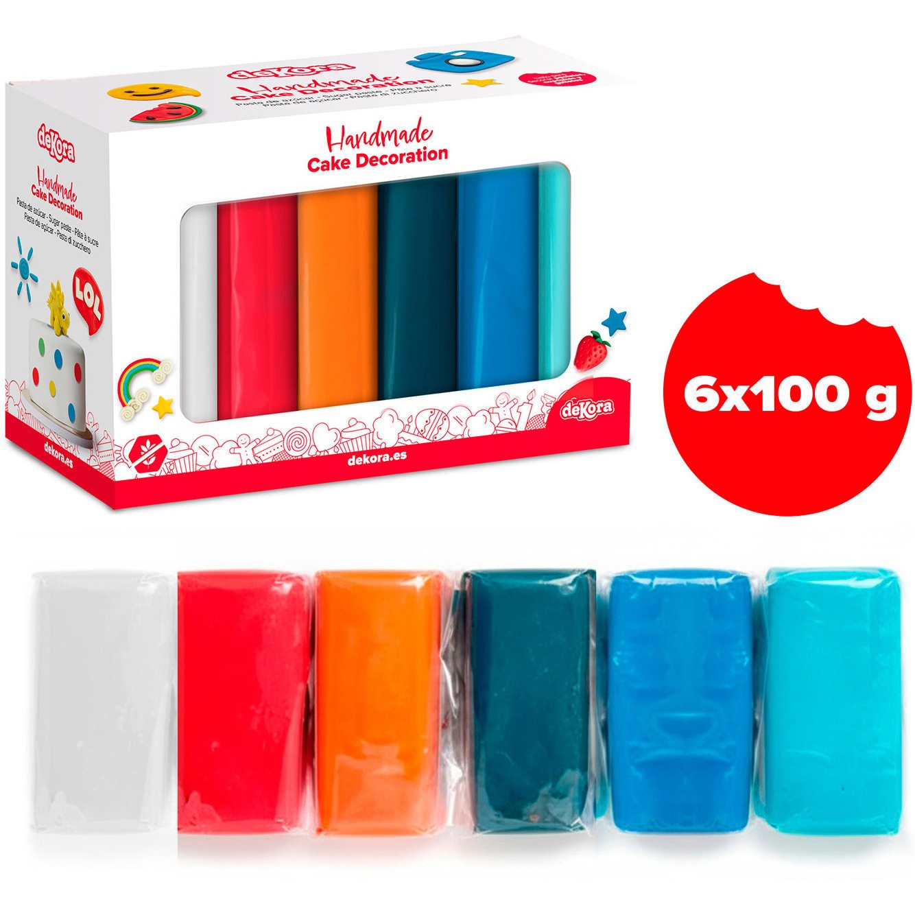 Set van 6 kleuren fondant 600 gr - space missie van Dekora