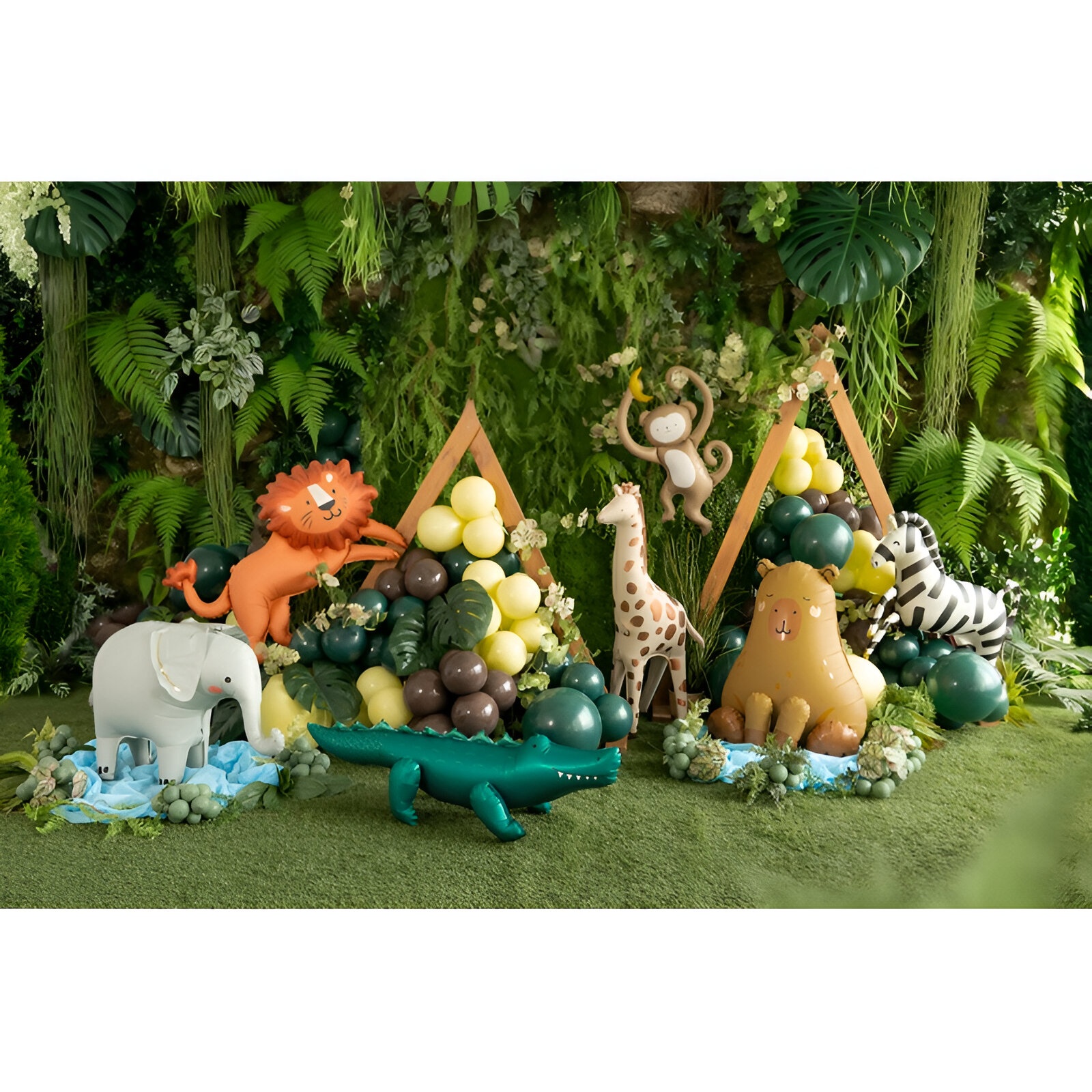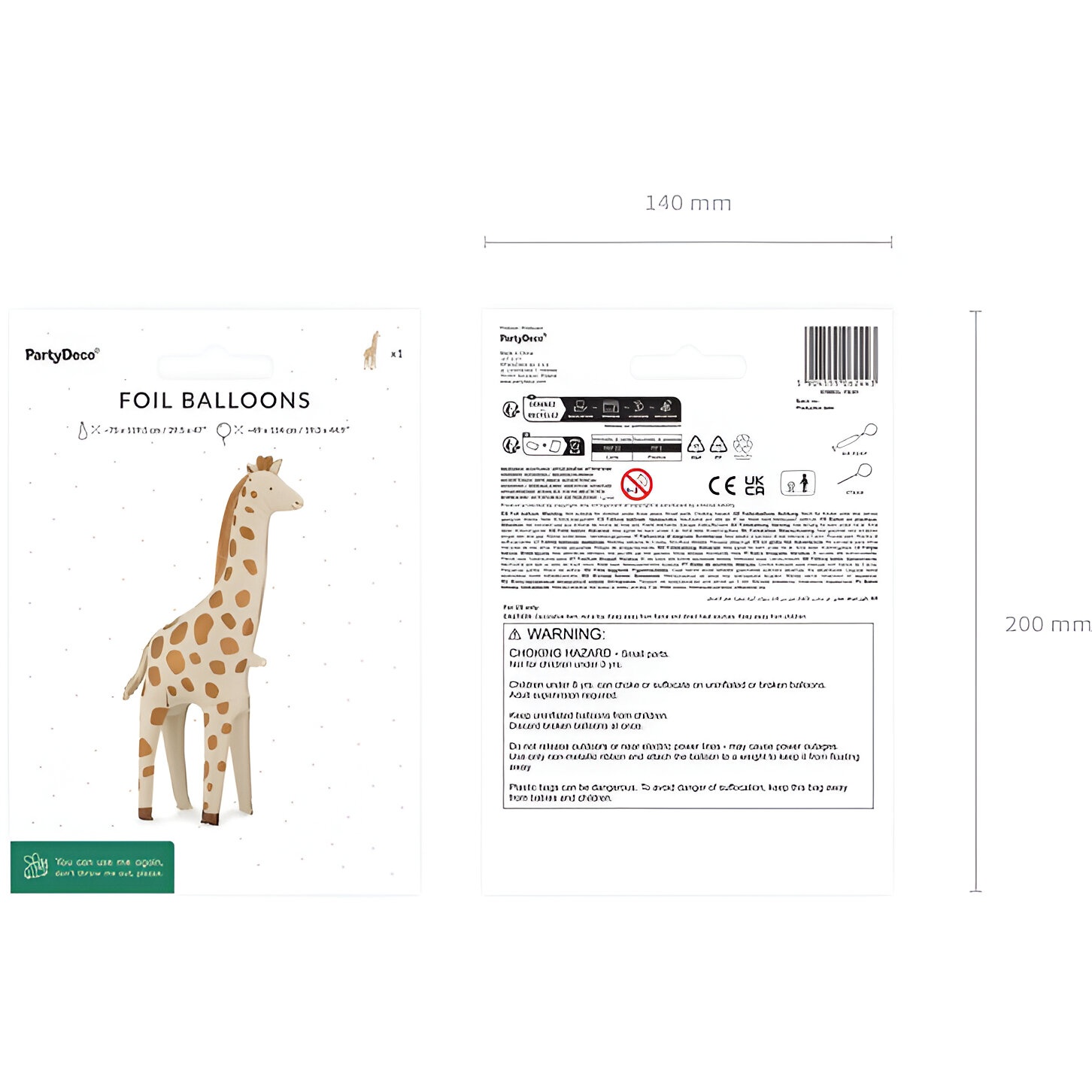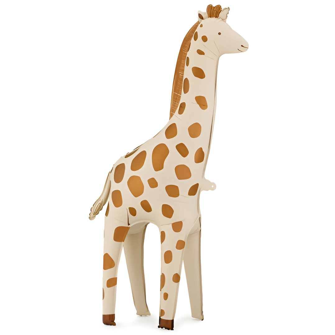 Staande giraffenballon in lichtbeige en bruintinten, met een hoog en opvallend design, ideaal voor kinderdécor met safari?thema.