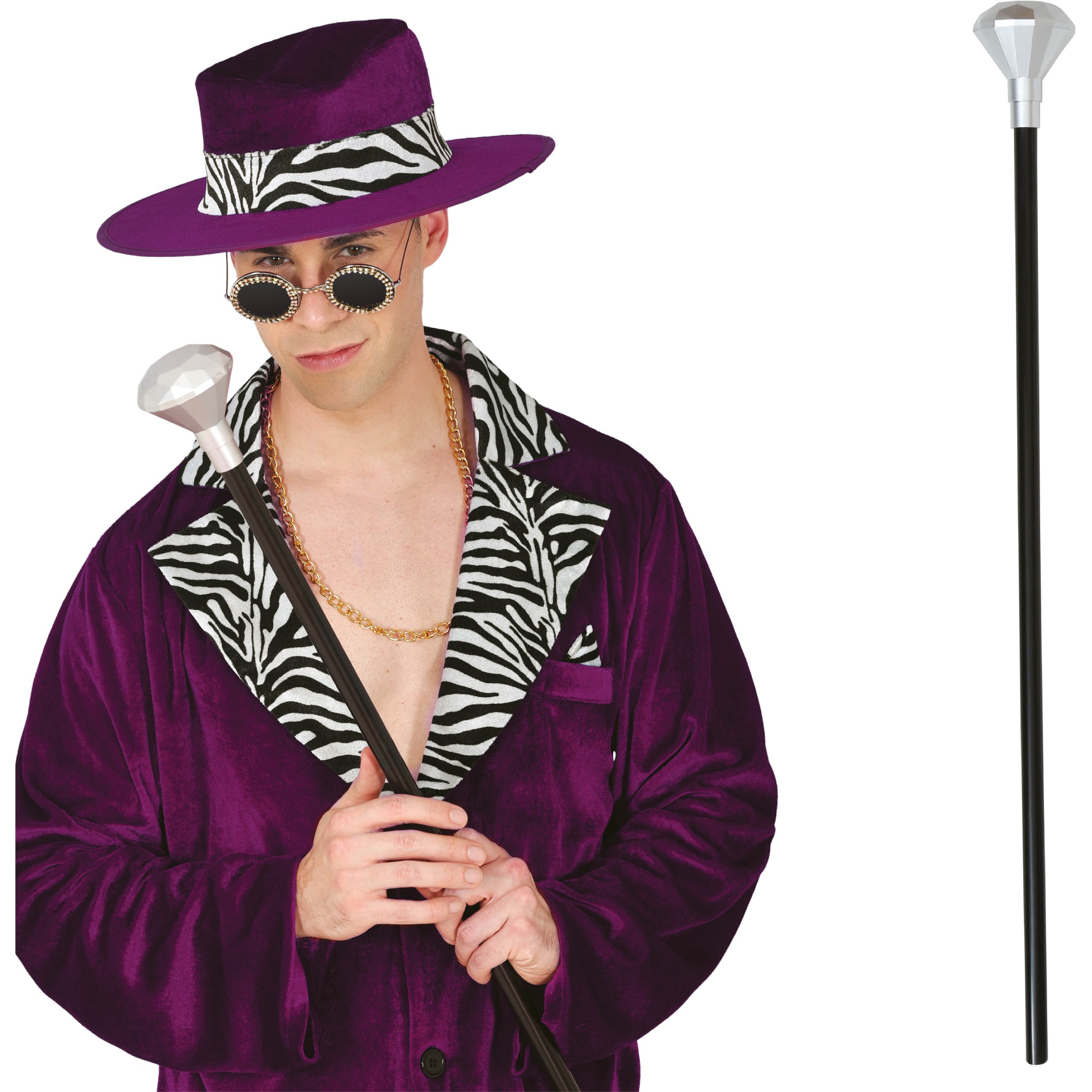 Opvallend accessoire geïnspireerd op de Willy Wonka-stijl waarmee je kostuum een vleugje glamour krijgt. Perfect voor themafeesten, carnaval en fotosessies. Gemaakt van licht PVC met een zilverkleurige diamantknop die de aandacht trekt. Elegant, gebruiksvriendelijk ontwerp dat je look direct meer uitstraling en stijl geeft.