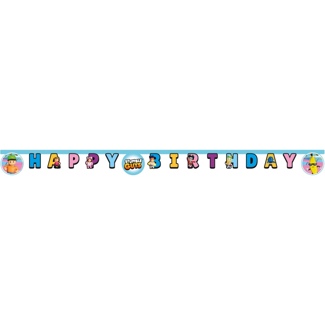 Slinger "Happy Bday" met Stumble Guys-design, bedoeld om kinderfeestjes een speels en kleurrijk accent te geven. Gemaakt van FSC-gecertificeerd papier, met grote letters en personages uit het spel die de aandacht van kinderen trekken. Wordt geleverd per stuk; eenvoudig op te hangen om de feestdecoratie compleet te maken.