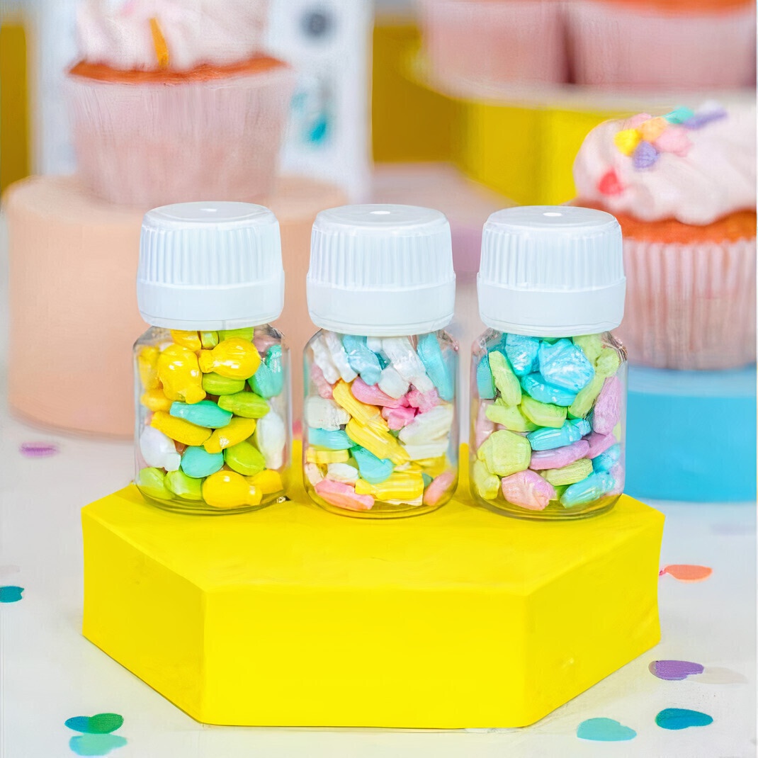 Ingrediënten cupcakes: Dextrose, maïszetmeel, dextrine, magnesiumstearaat, Bakglazuur, Carnaubawas, Kleurstoffen E133, *E102 en E162. *Kan een negatieve invloed hebben op activiteit en aandacht bij kinderen.