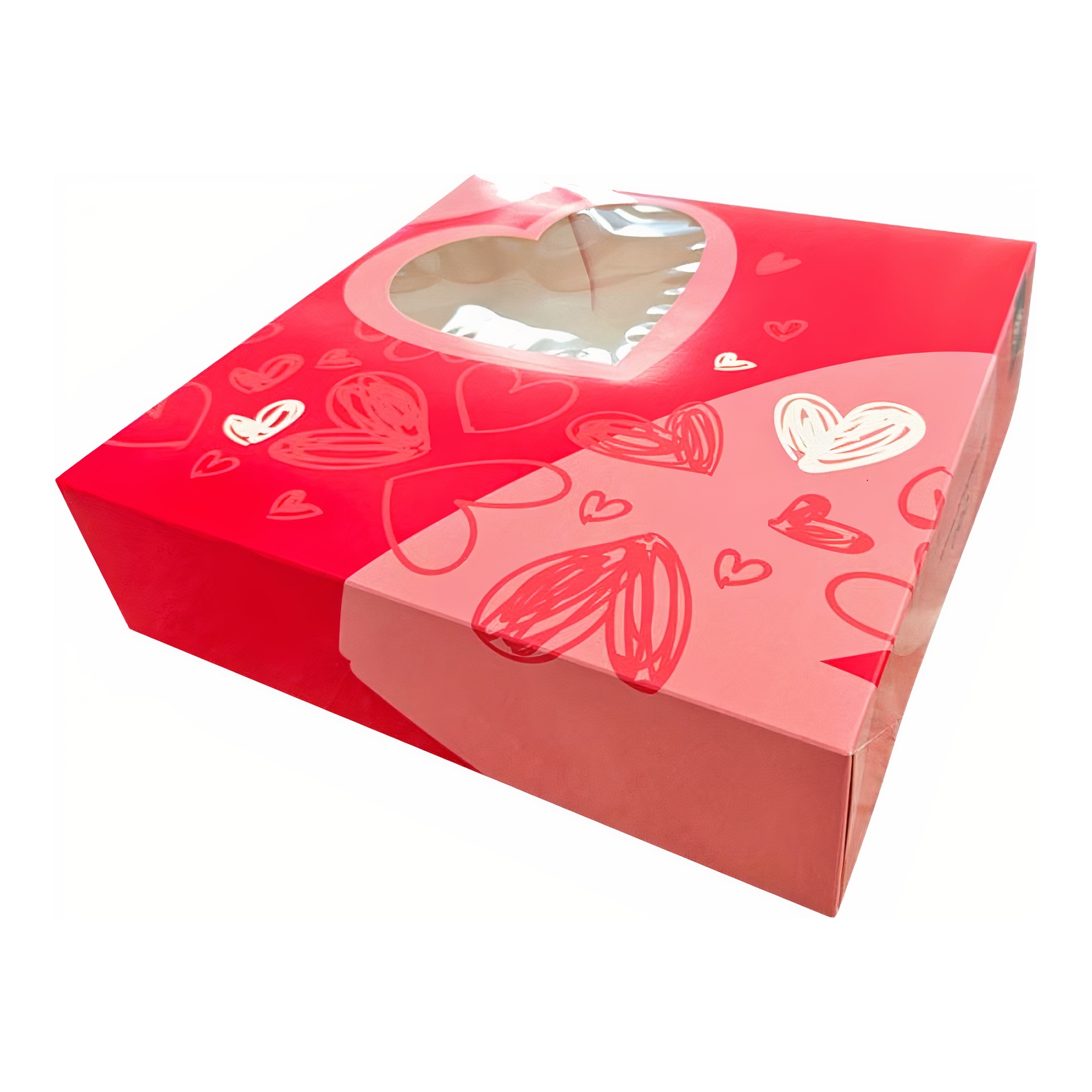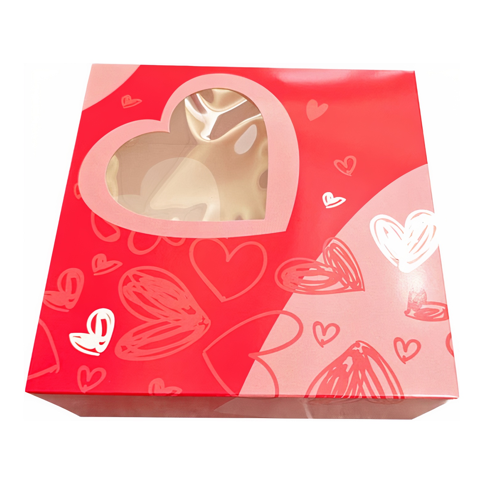 Originele kartonnen doos met venster, ideaal om je taart veilig en stijlvol te vervoeren met Valentijnsdag.