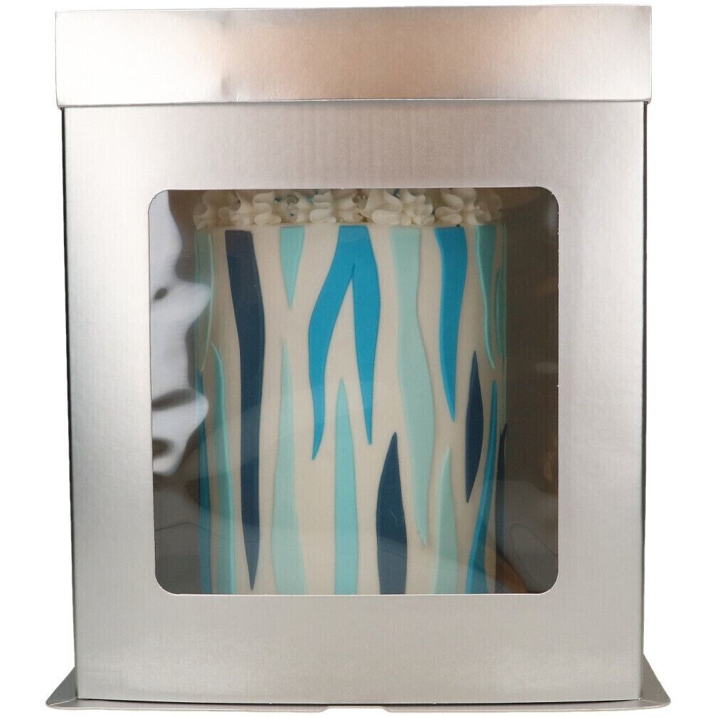 Taartdoos van 30,4 x 30,4 x 34,5 cm in metalen kleur met venster - 1 stuk