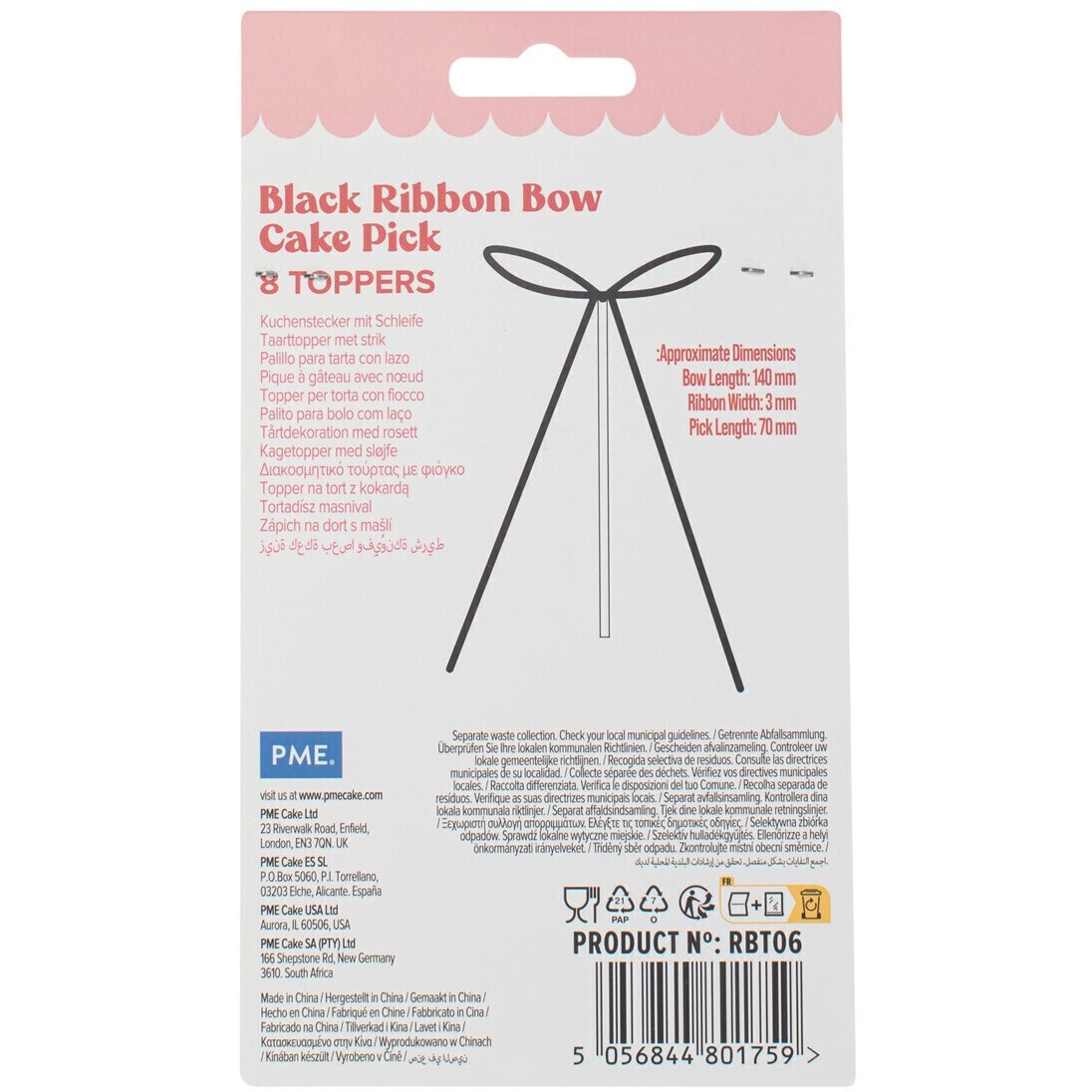 Taarttopper met strik - 8 stuks