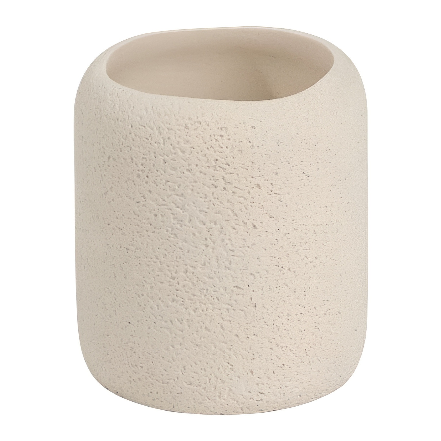 Beker voor tandenborstels met een organisch ontwerp en ruwe textuur die warmte en karakter aan de badkamer toevoegt.