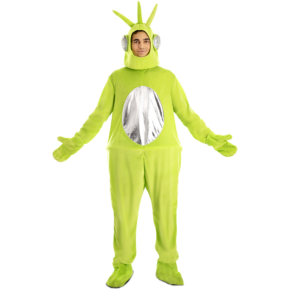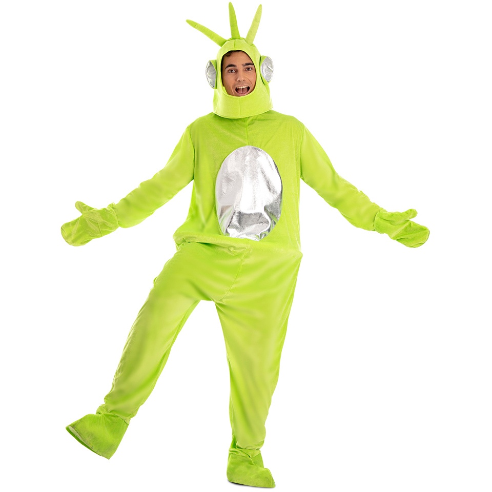 Dit is een kostuum voor volwassenen dat doet denken aan een van de personages van de Teletubbies, namelijk Dipsy.