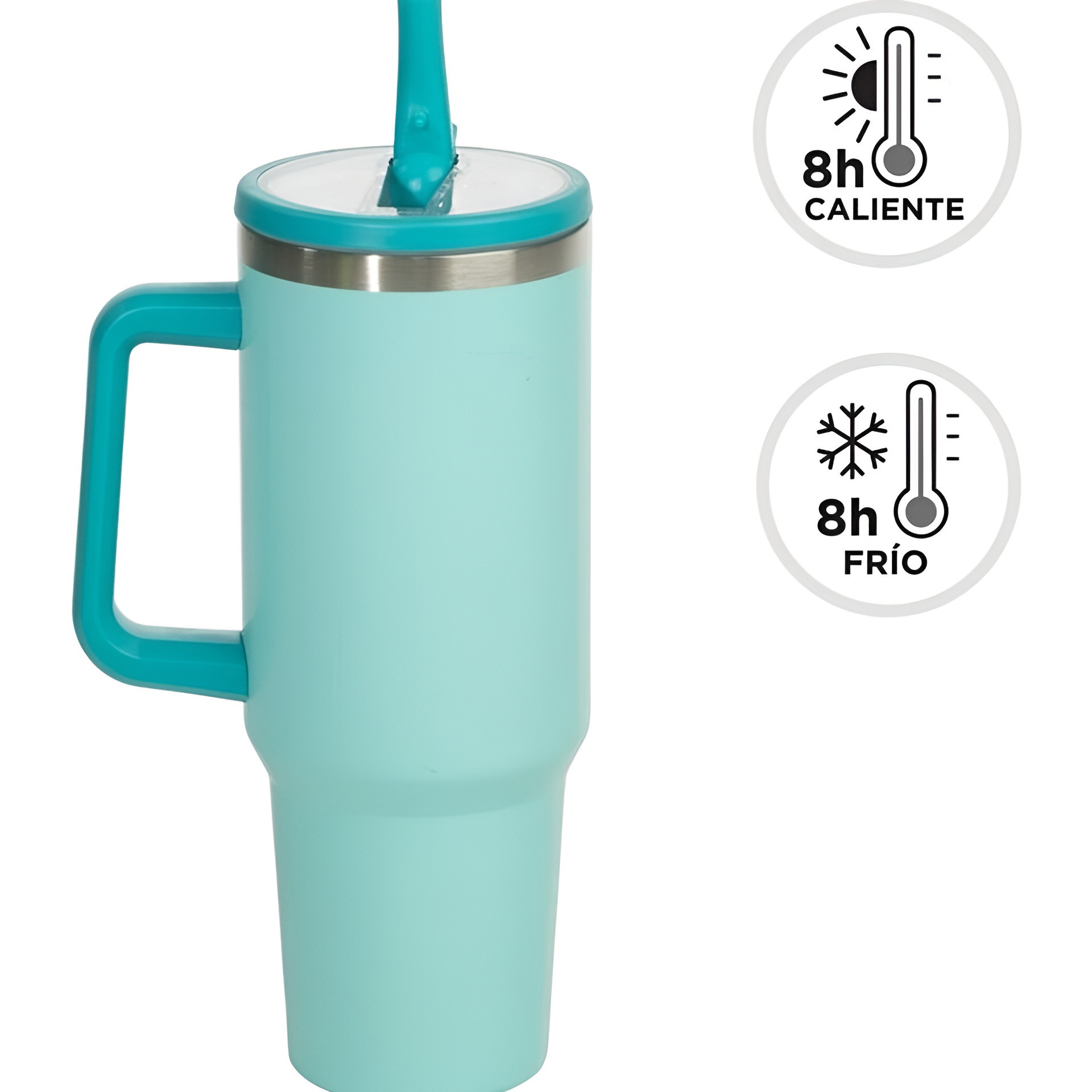 Functioneel, eigentijds ontwerp dat je dagelijks vergezelt met stijl. Het ergonomische handvat maakt transport en gebruik op elk moment eenvoudig. Het deksel met rietje zorgt ervoor dat je comfortabel kunt drinken zonder het volledig te openen. Ideaal om dranken mee te nemen tijdens reizen, lange werkdagen of naar je werk.