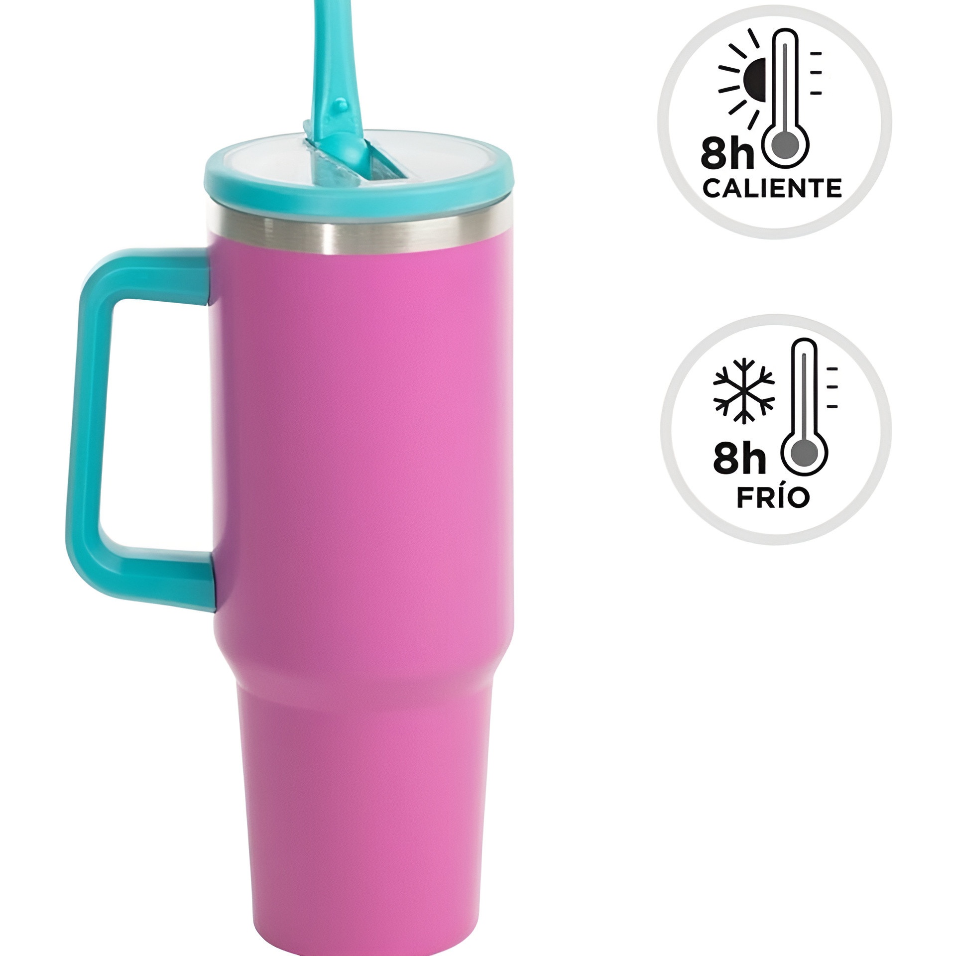Geniet van je drankjes onderweg met deze ruime thermosbeker (1,2 L) met dubbele isolatielaag. Gemaakt van roestvrij staal, houdt hij je dranken urenlang op temperatuur en is hij bestand tegen dagelijks gebruik. De lekvrije deksel met tuit en veilige sluiting maakt het gemakkelijk om in de auto of onderweg te drinken zonder te knoeien. Het ergonomische handvat zorgt voor een comfortabele grip en het hoge, smalle ontwerp past in de meeste bekerhouders. De fluorescerende magenta afwerking geeft een moderne uitstraling en maakt de beker eenvoudig terug te vinden.