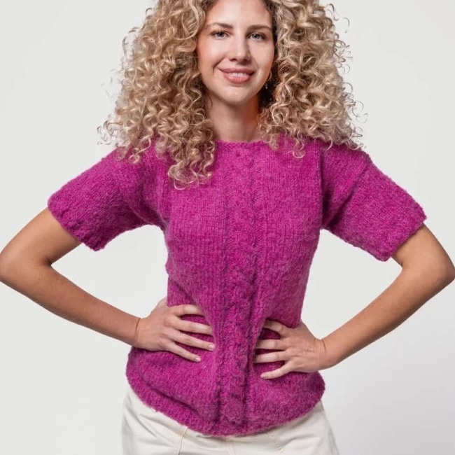 - Mouwloze trui met een centrale kabel. Moeilijkheidsgraad makkelijk.