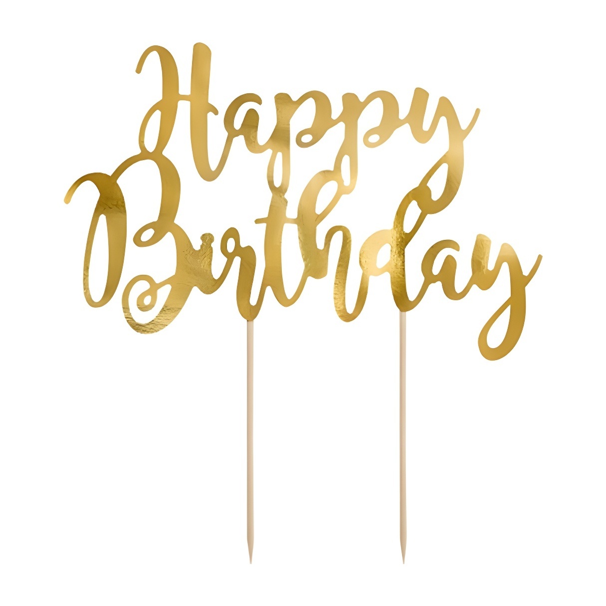 Het bestaat uit twee houten stokjes van ongeveer 15 cm lang waaraan de inscriptie Happy Birthday is bevestigd, die je in de taart kunt prikken of op elk ander element dat je ontwerpt voor dit doeleinde. Geef je viering een elegant tintje met dit accessoire.