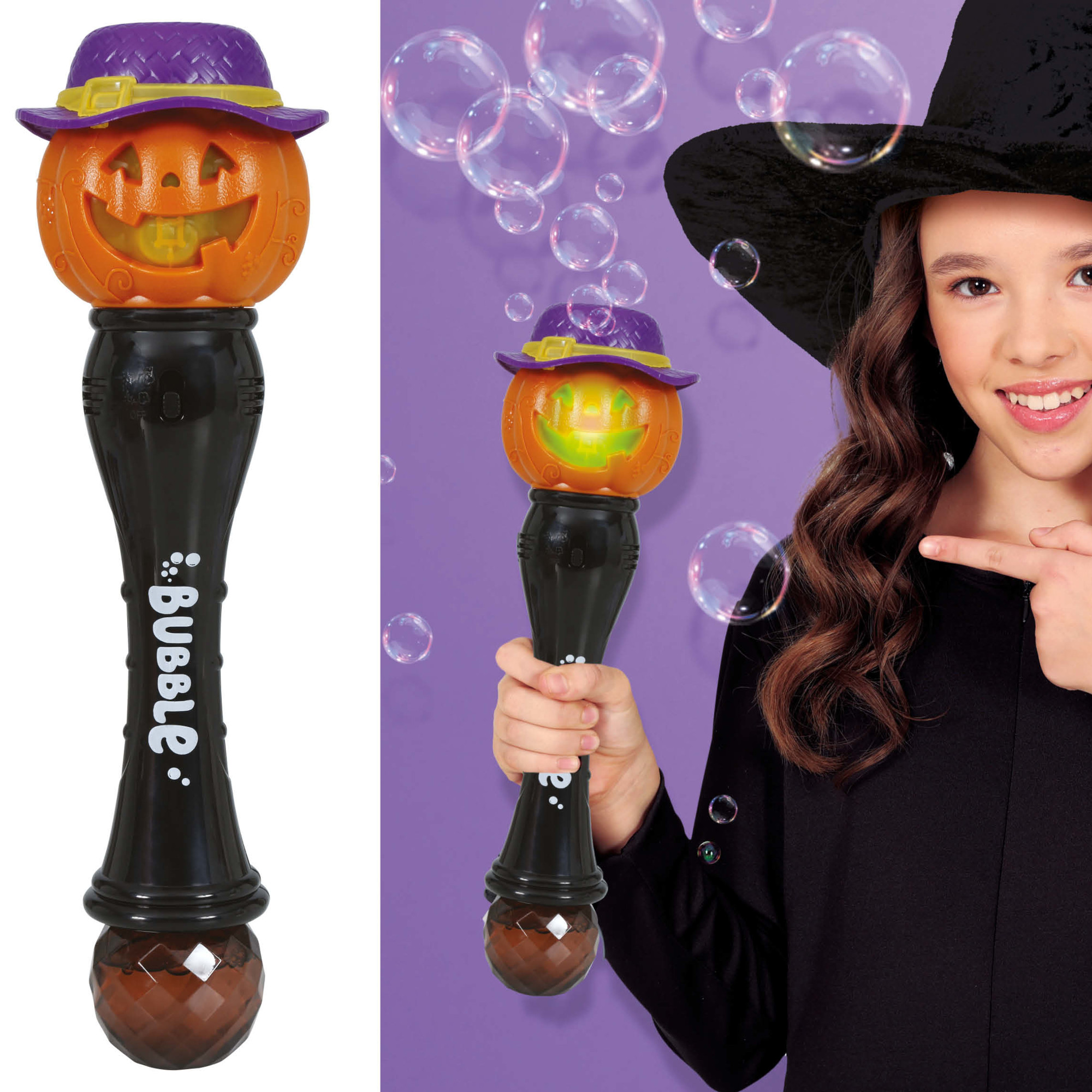 Toverstaf pompoen bellen licht en geluid, 32 cm