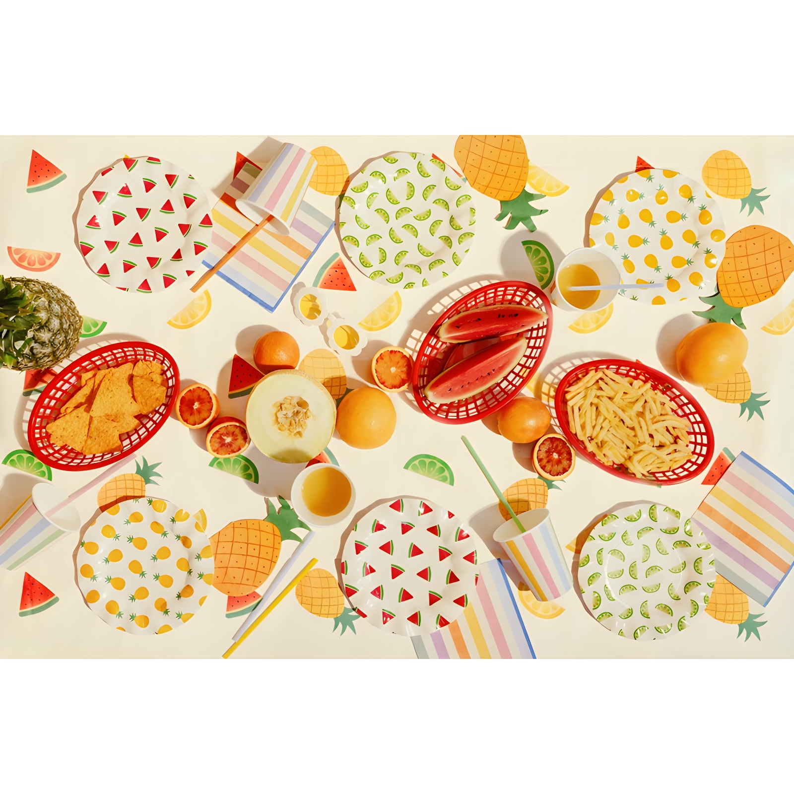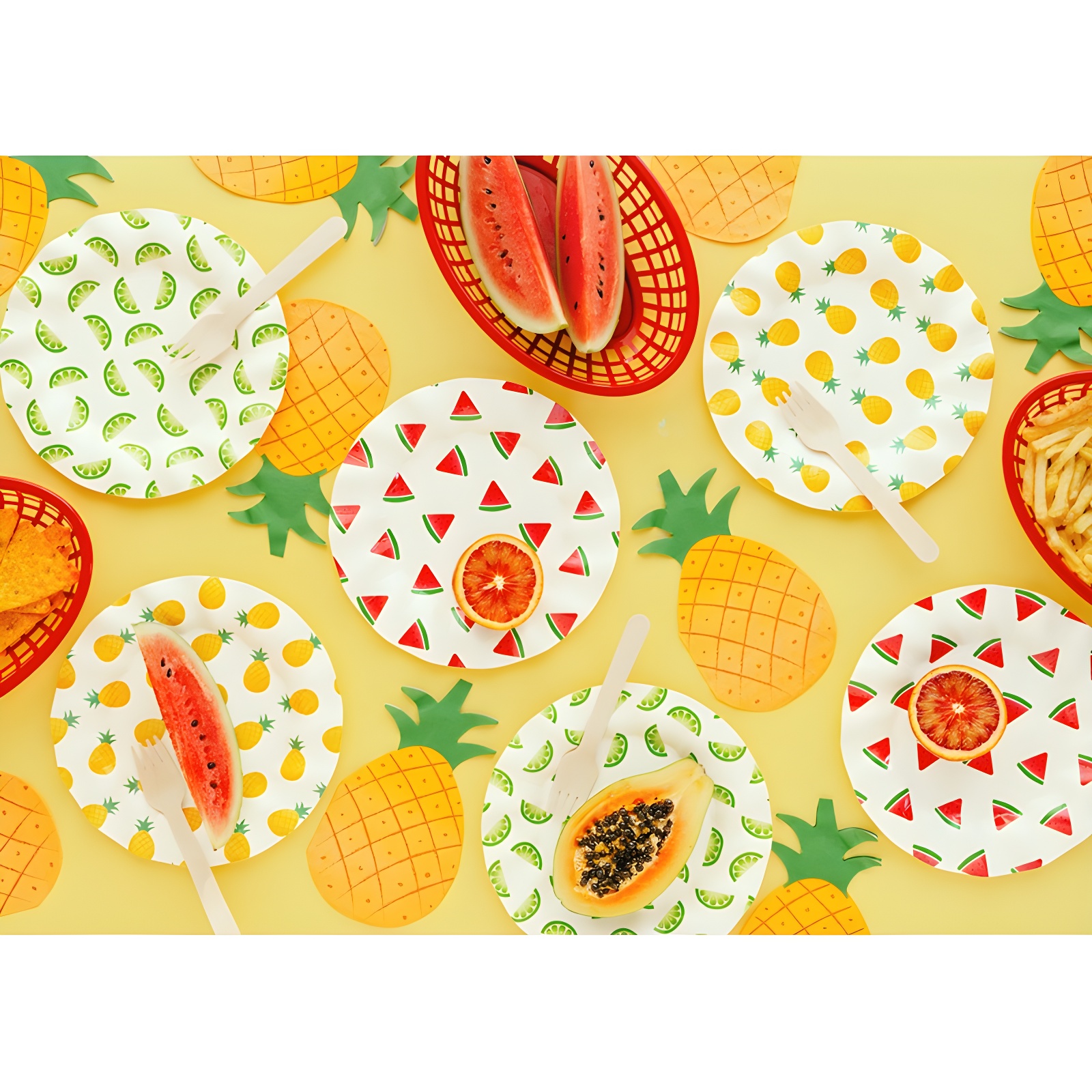 Papieren servetten met een vrolijk ananasdessin in geel en groen - perfect om een tropische touch te geven aan verjaardagen, borrels en informele bijeenkomsten. Met twee lagen voor extra absorptie en een zacht gevoel; ideaal om de tafel stijlvol en zonder gedoe te versieren. Het kleurrijke ontwerp fleurt elke feestelijke sfeer op.