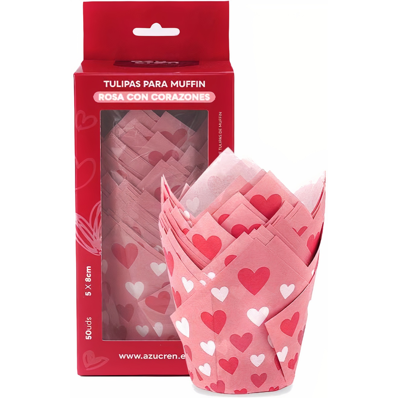 Tulpenbakjes van papier voor muffins met hartjes - Valentijnsdag - Azucren - 50 stuks