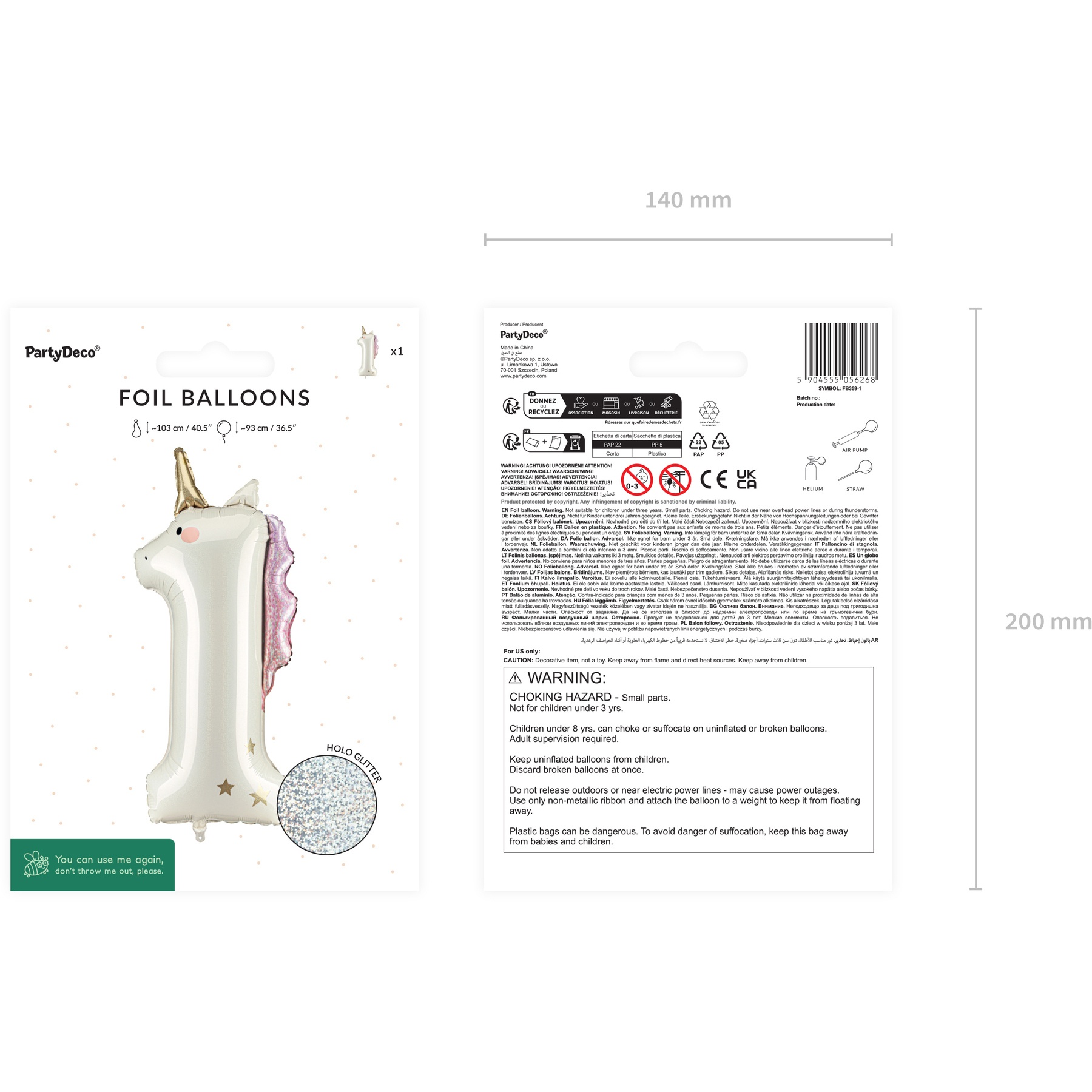 Unicorn Nummer Ballon 93 cm - PartyDeco - 1 Stuk
