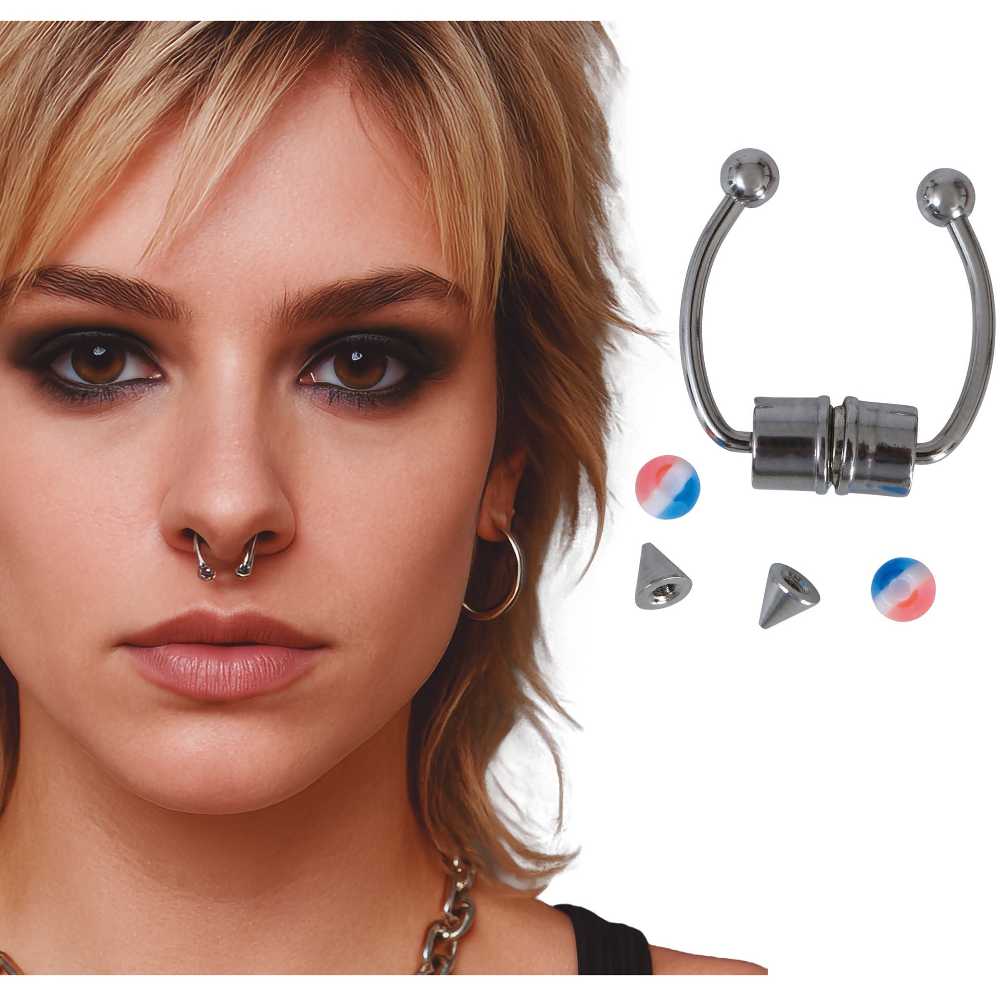 - Realistische uitstraling om een piercing te simuleren zonder perforatie.