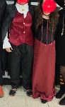 De hoofdtooi bestaat uit een minihoedje dat het ontwerp van het kostuum volgt en compleet gemaakt met een zwarte sluier die veel karakter aan het kostuum toevoegt.