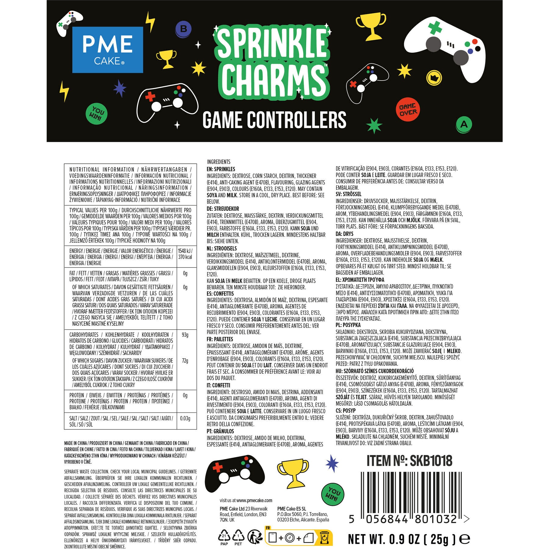 Ingrediënten: dextrose, maïszetmeel, dextrine, verdikkingsmiddel (E414), antiklontermiddel (E470B), aroma, glansmiddelen (E904, E903), kleurstoffen (E160A, E133, E153, E120).