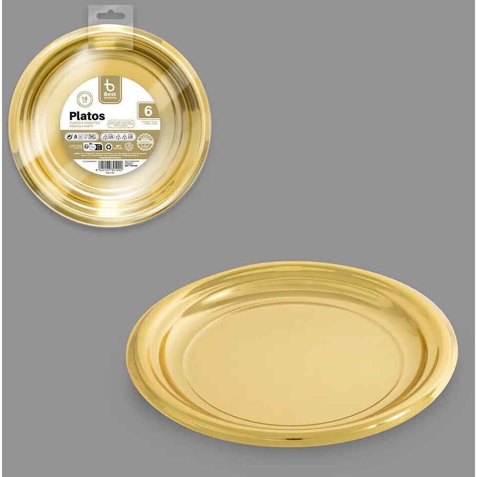 Vierkante gemetalliseerde plastic borden van 18 cm - 6 stuks