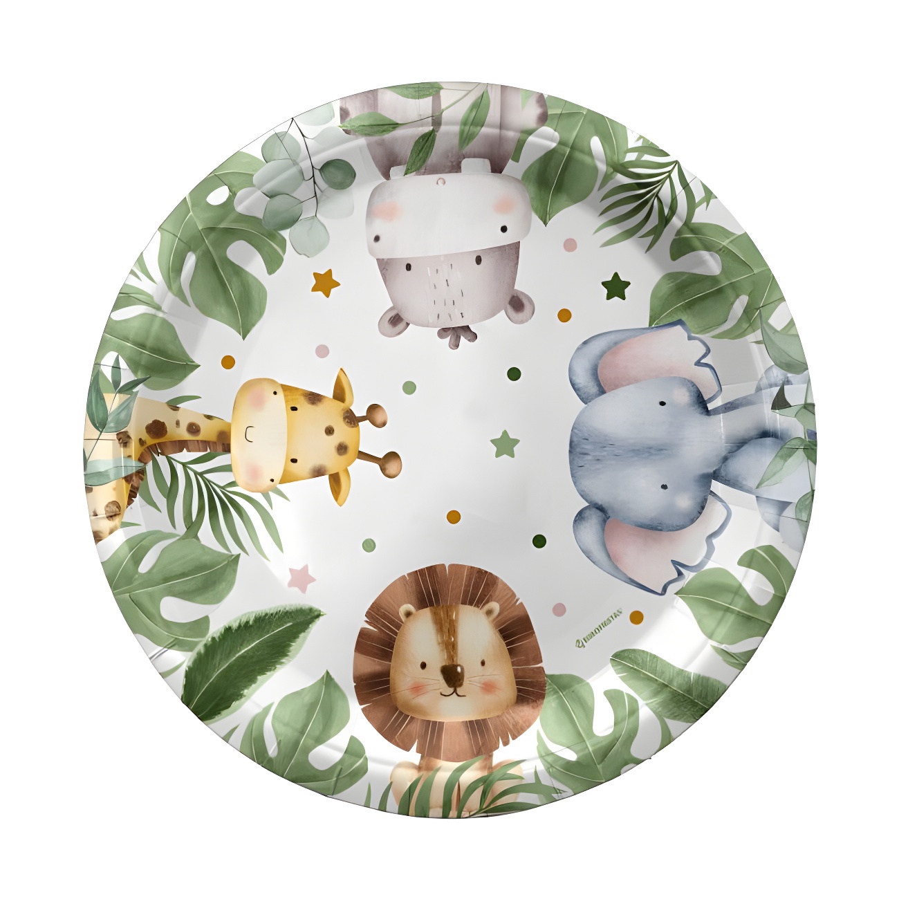 Kleurrijke papieren borden om de tafel mee te decoreren tijdens een feestje met dieren-thema.