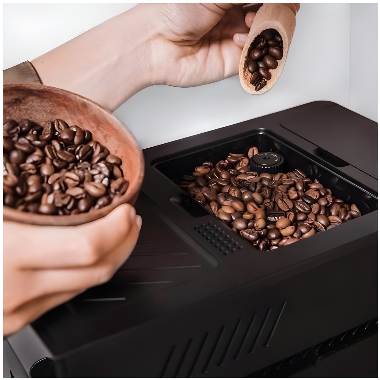 Molinillo integrado: no introduzca dedos, utensilios ni objetos en la tolva o el mecanismo del molinillo; apague y desconecte antes de vaciar o limpiar el molinillo.