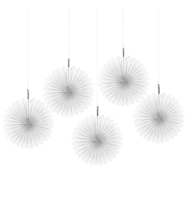 Bestaat uit een pakket dat 5 papieren bloemwaaiers bevat.