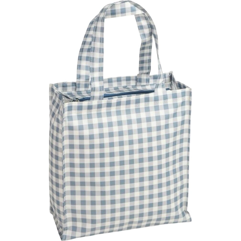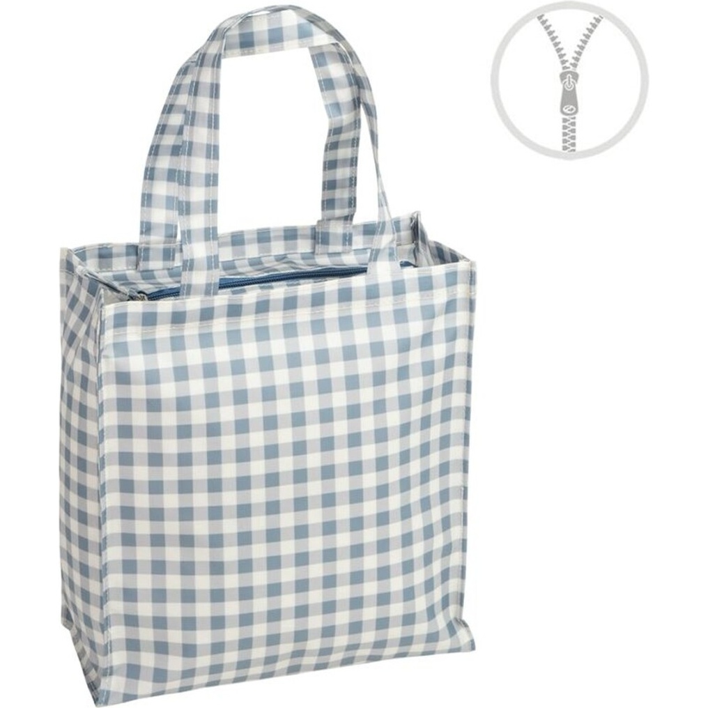 Waterbestendige tas met ritssluiting en blauw vichy-design. Voorzien van versterkte handvatten en een gestructureerde vorm die je organisatie behoudt. Licht en degelijk, en geeft elke look een klassieke, ongedwongen touch. Ideaal om persoonlijke spullen stijlvol en veilig mee te nemen dankzij het waterdichte materiaal.
