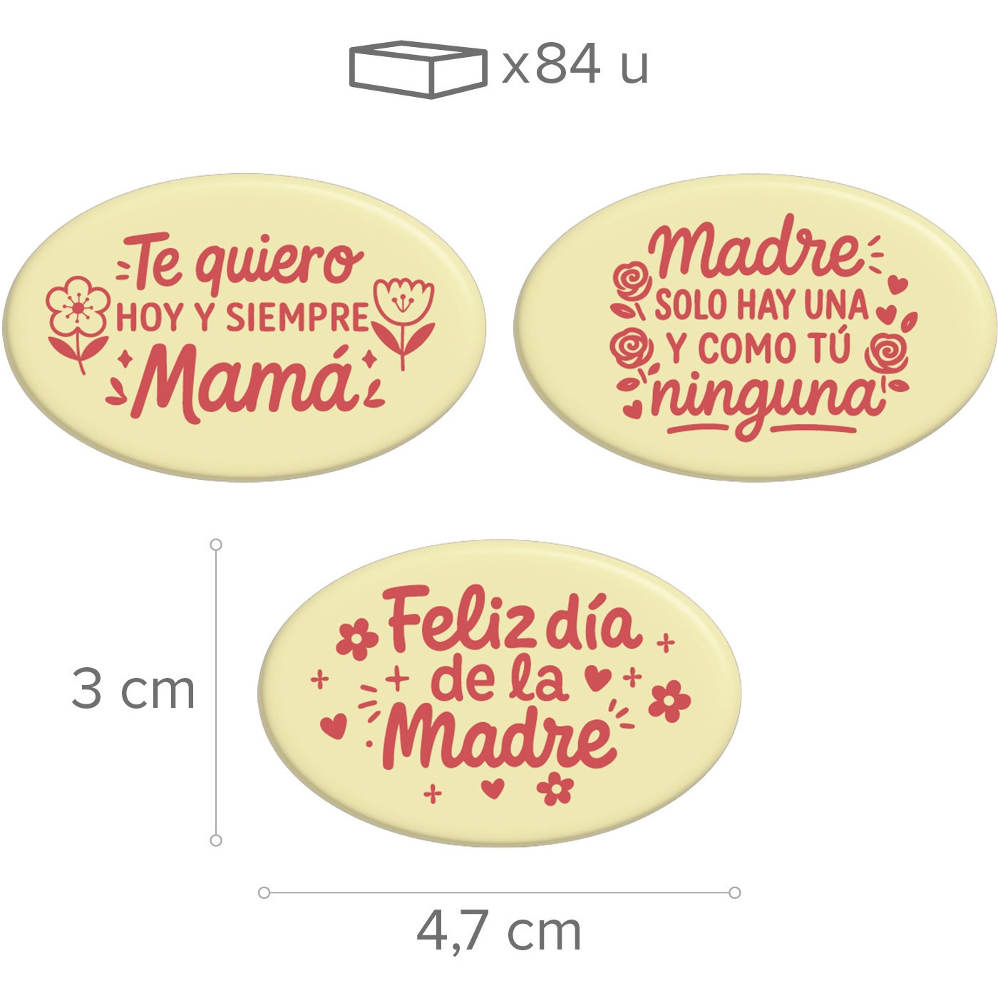 Witte chocolade-tekstplaatjes voor Moederdag 4,7 x 3 cm - 84 stuks