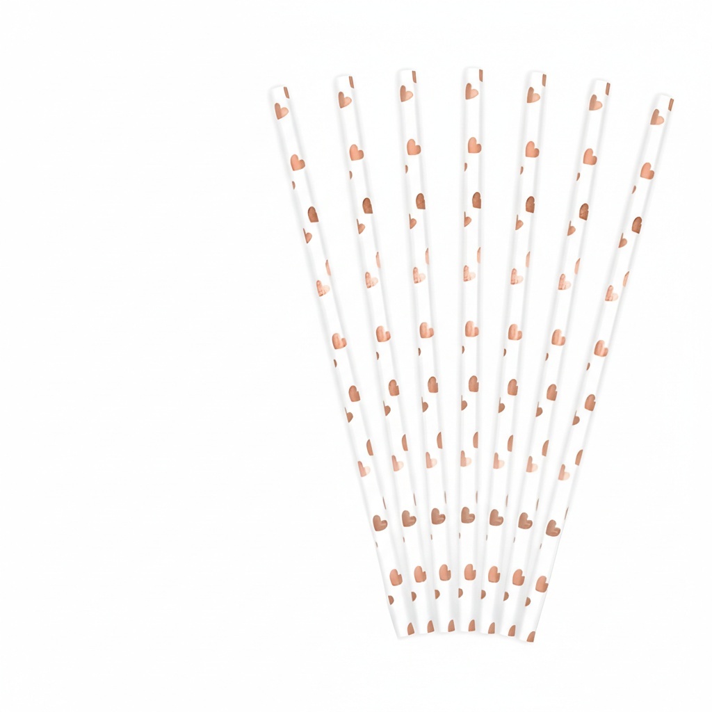 Witte papieren rietjes met gekleurde hartjes - 10 stuks