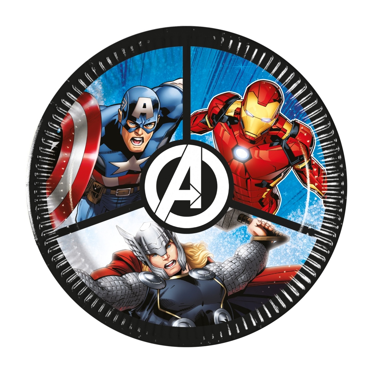 Set van 8 borden (20 cm) met officieel Avengers-design, speciaal voor kinderfeestjes.