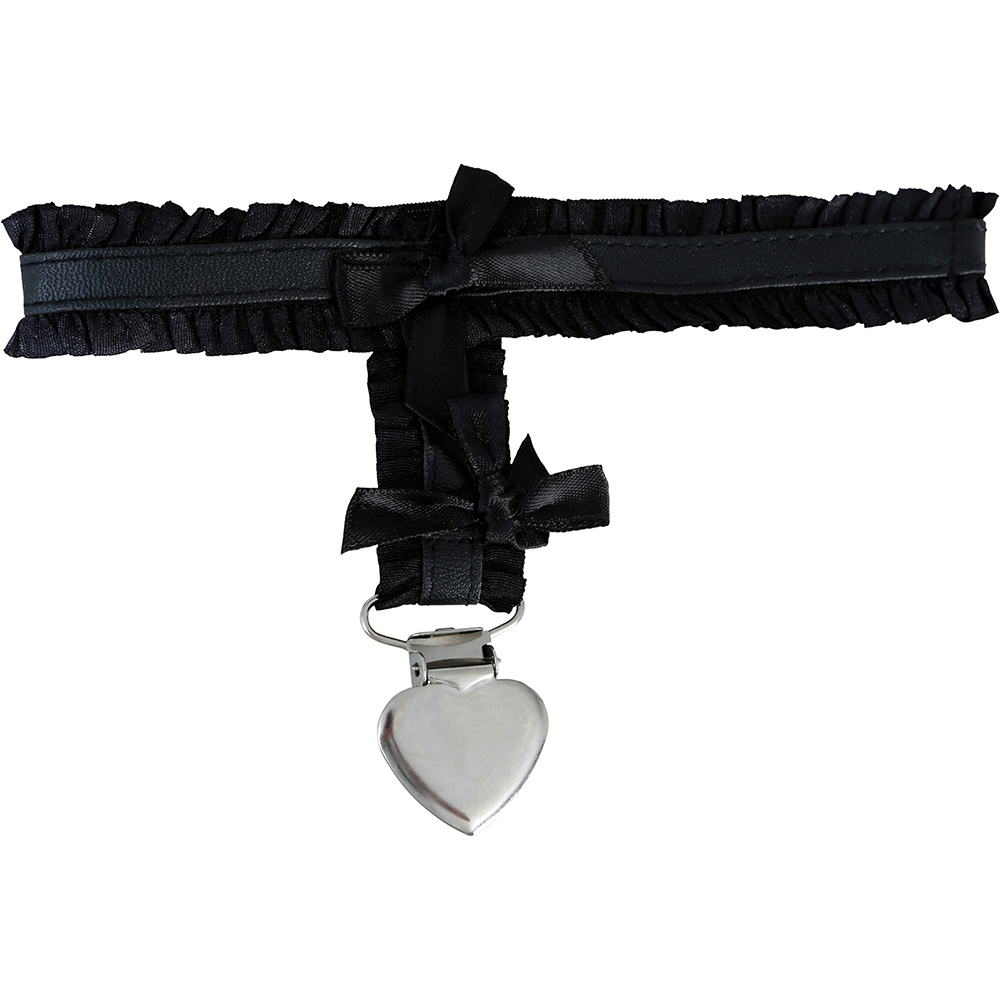 Elegante, verstelbare zwarte dijband voor dames, met ruches en een decoratief strikje die zorgen voor een romantische touch. De metalen klem heeft een hartvormig hangertje voor een speels en opvallend accent. Comfortabel en aanpasbaar ontwerp dat stevig blijft zitten zonder concessies te doen aan de uitstraling. Gemaakt van polyester met metalen details voor een verfijnde look.